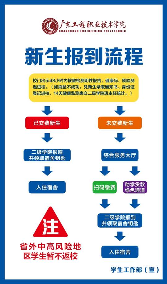 1.学生所在县(市、区)有中高风险地区的暂不到校,待降为低风险地区后再安排报到;