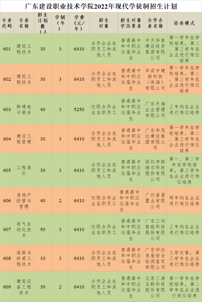 根据《广东省教育厅关于做好2022年高等职业院校自主招生工作的通知》和《广东省教育厅关于做好2022年省高职教育现代学徒制试点工作的通知》等文件精神,我校决定开展现代学徒制试点招生。现代学徒制是“招生招工一体化、企业员工和学校学生双重身份、校企双主体育人”基本特征,核心是校企联合招生、联合培养,具有校企联合双元育人、交互训教、在岗培养、学徒双重身份、工学交替、岗位成才的特点。