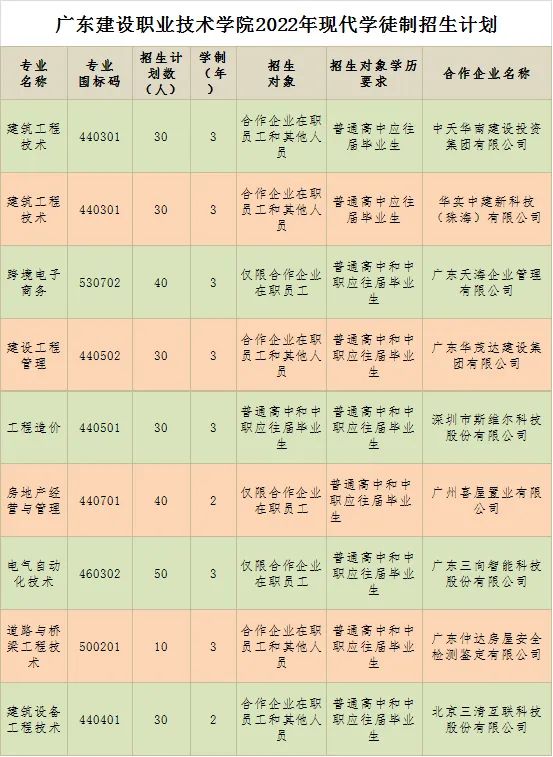 2、广东建设职业技术学院2022年现代学徒制自主招生有哪些专业呢?