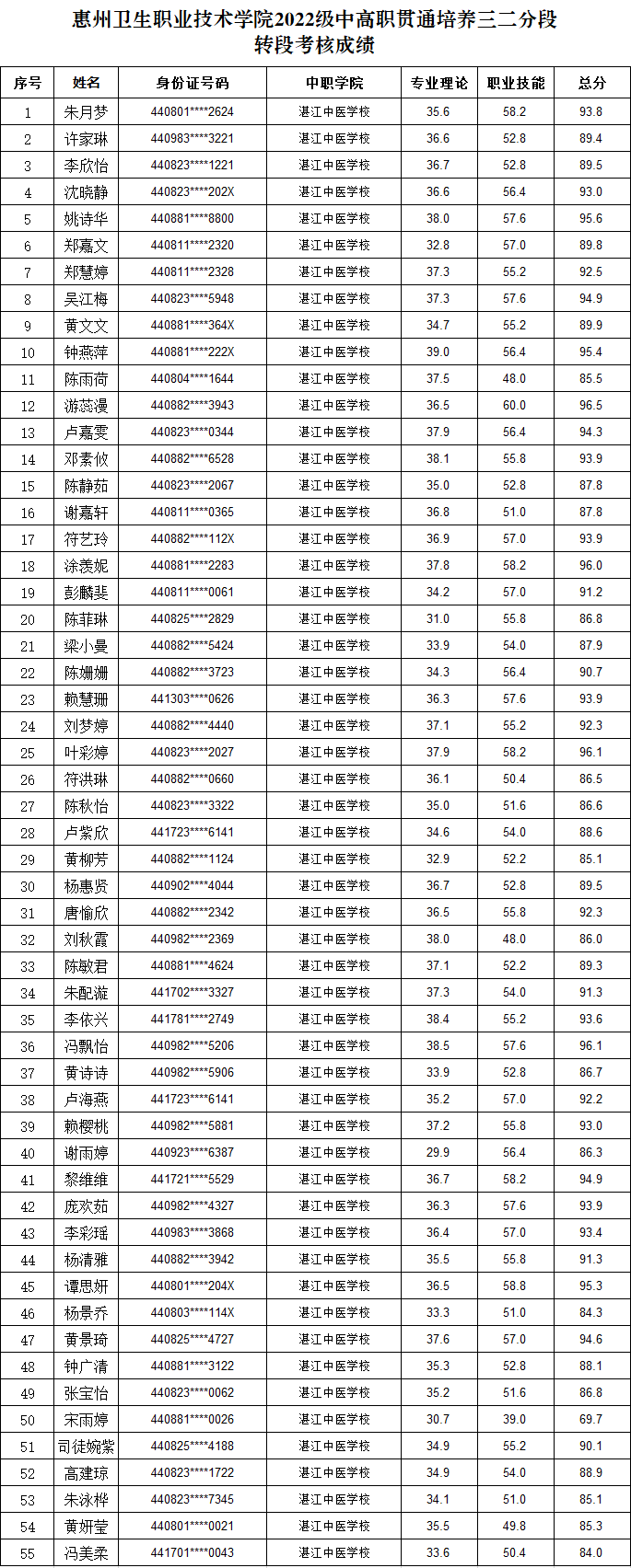 我校2022级中高职贯通培养三二分段转段考核工作已结束,现对2022级中高职贯通培养三二分段转段考核考生成绩进行公示(见附件),公示期为2024年7月2日至7月7日。