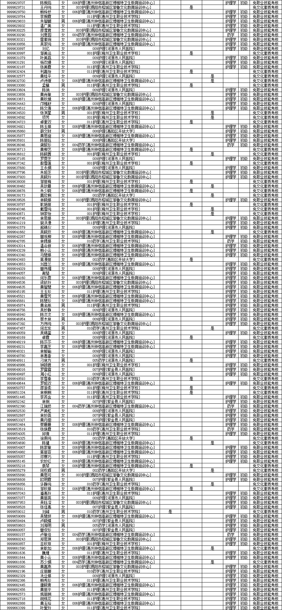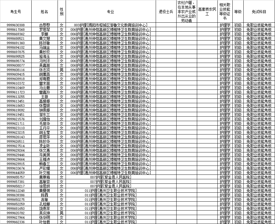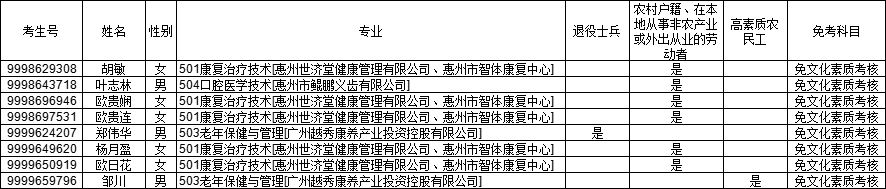 附件:2021年惠州卫职院高职扩招免考单科人员名单