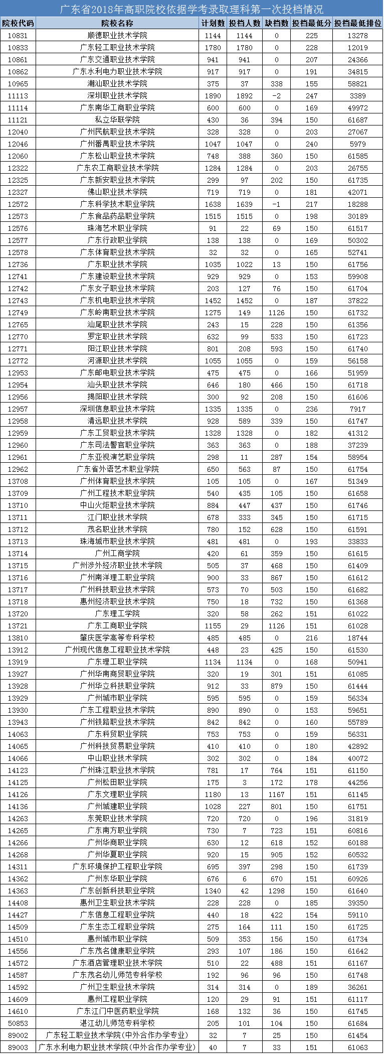 综上,惠州卫生职业技术学院2018年学考录取,一志愿满额,文科最低投档分数205分,理科最低投档分数185分。
