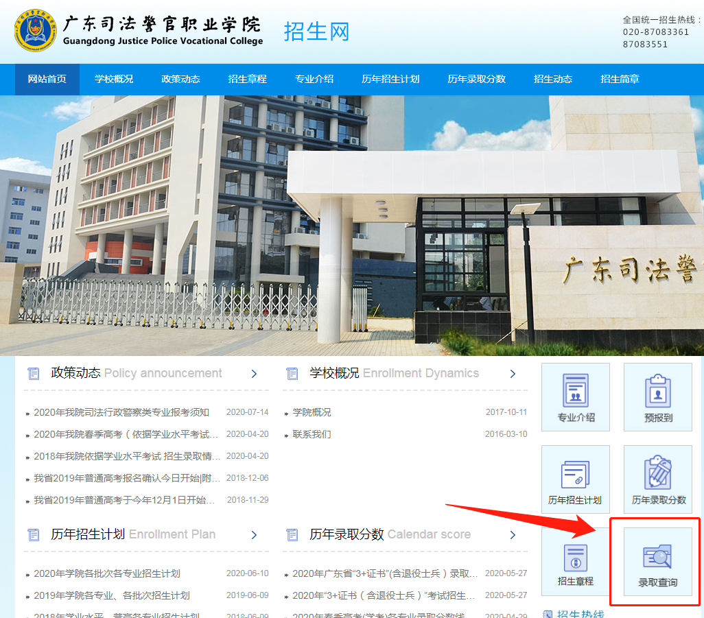 我院已完成“2021年专科提前批(司法行政警察类专业)”录取工作,录取情况请考生登录我院官网(http://www.gdjpvc.edu.cn),点击招生就业栏目,进入招生网查询,或直接输入我院招生网网址(http://www.gdjpvc.edu.cn:9001/zsxt-web/index.do)进行查询。