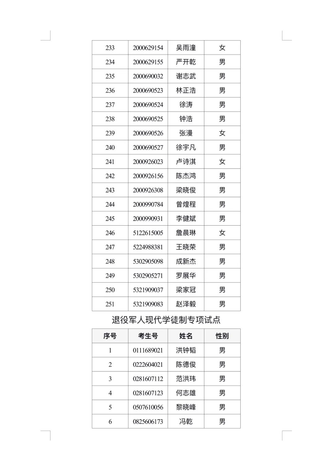 2024年广州体育职业技术学院自主招生审核通过名单公示(含退役军人现代学徒制)