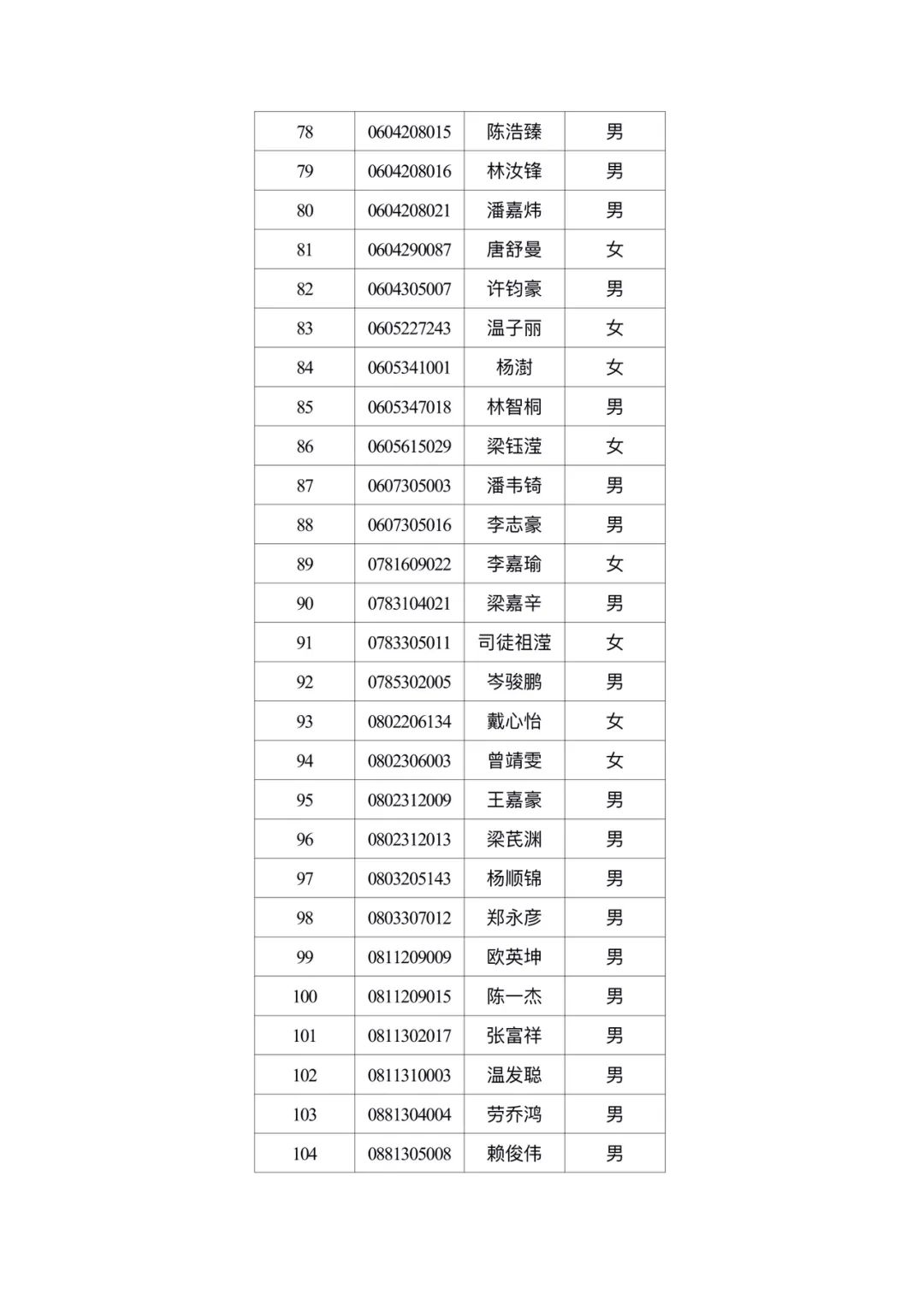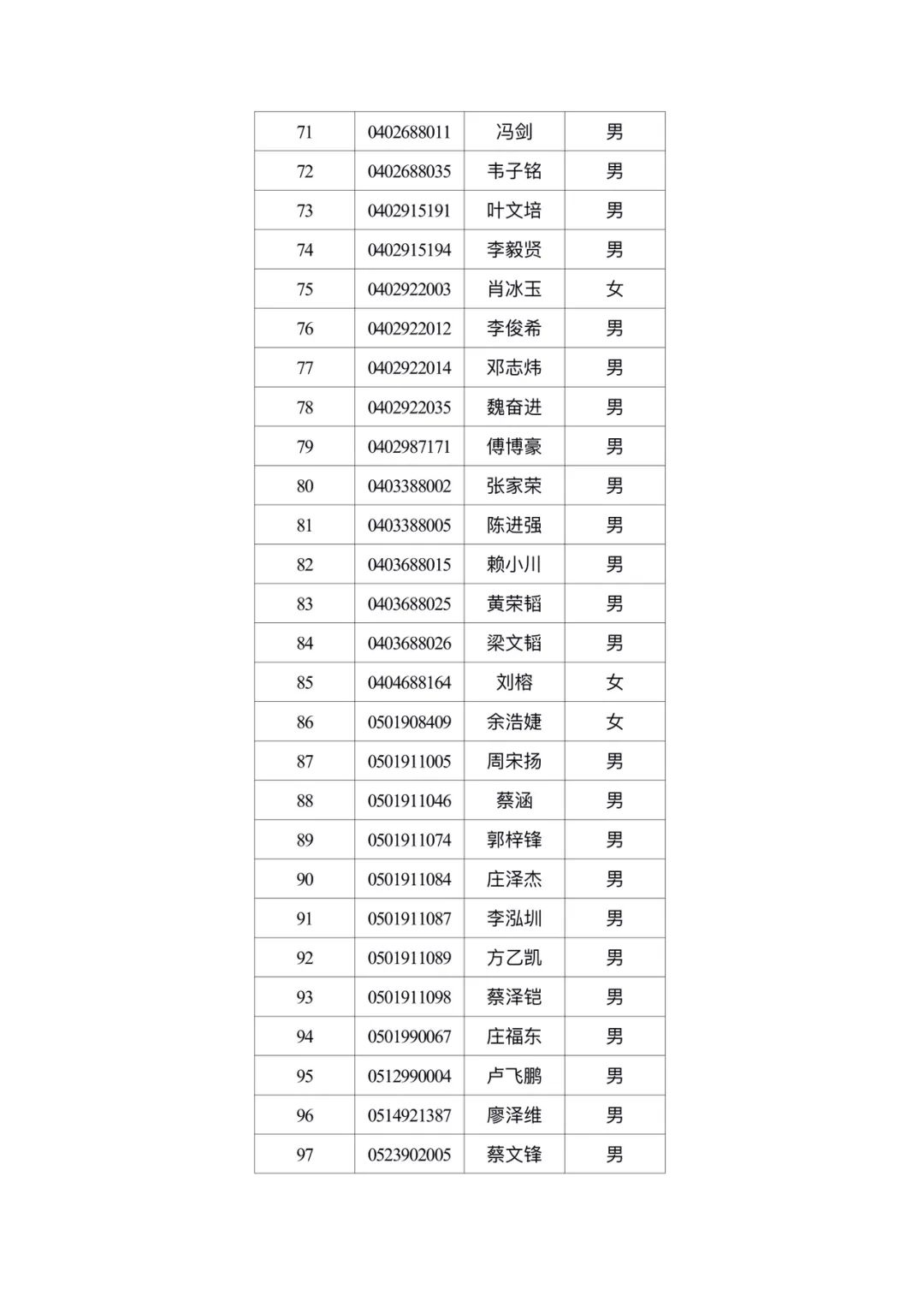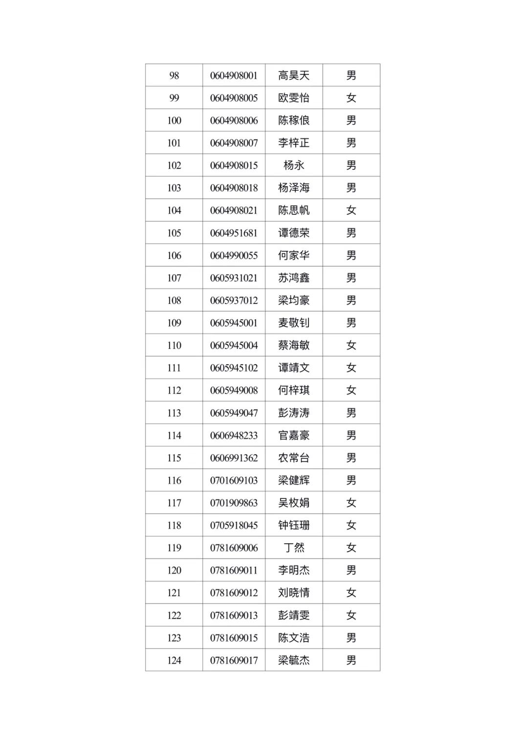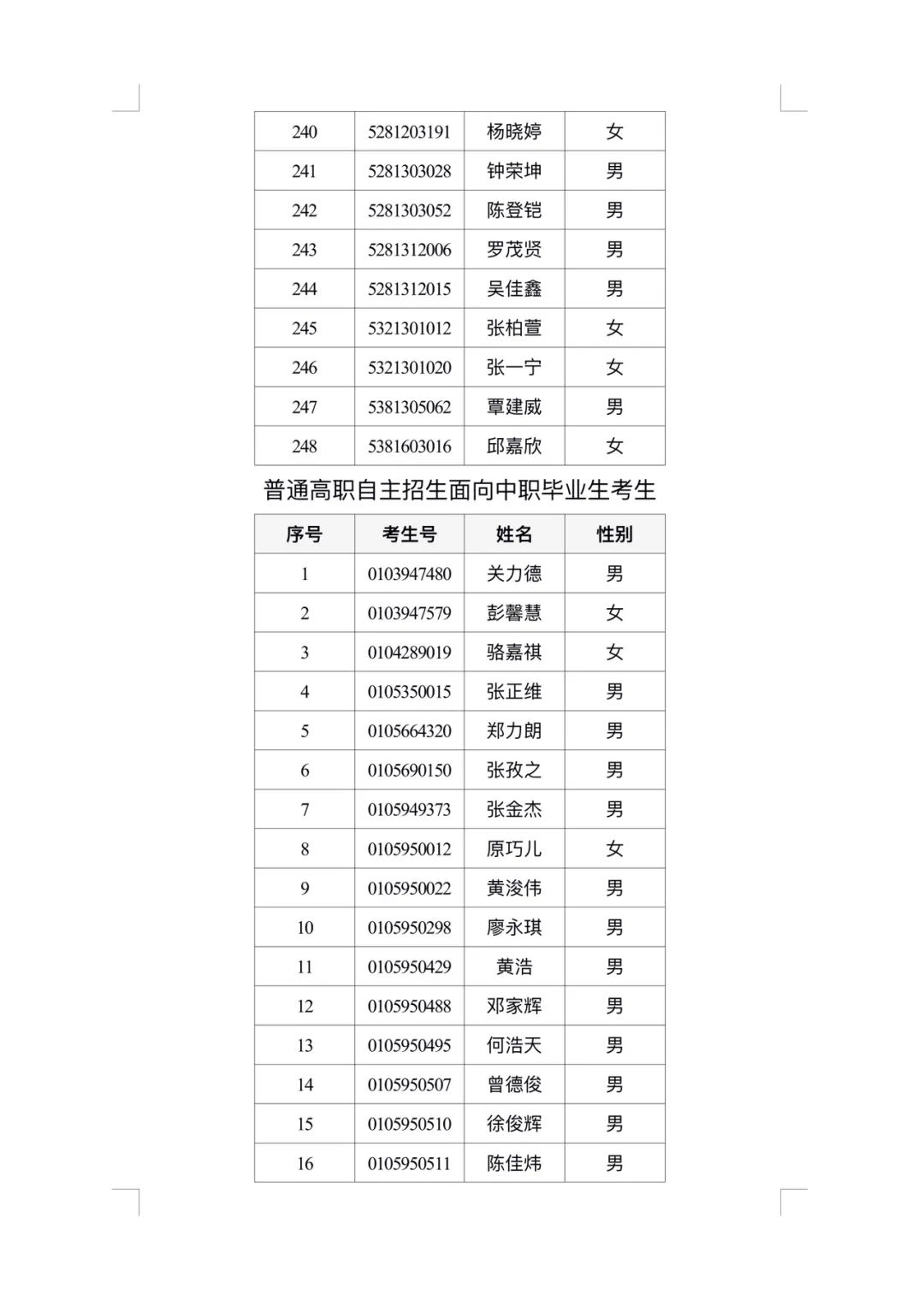 附件2:广州体育职业技术学院2024年自主招生免试通过名单公示 广州体育职业技术学院招生办2024年5月13日