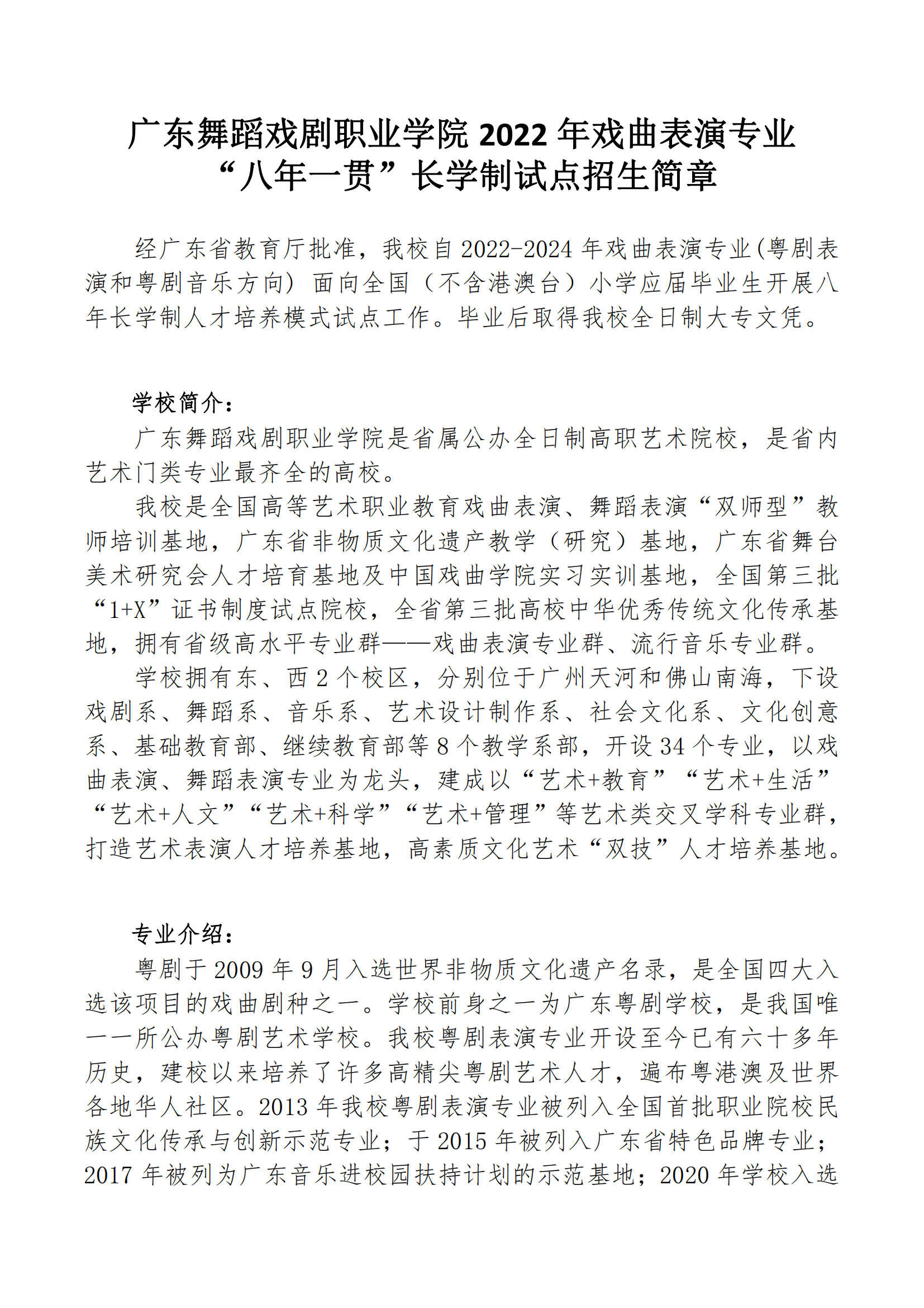 附件:广东舞蹈戏剧职业学院2022年戏曲表演专业八年一贯长学制试点招生简章.pdf