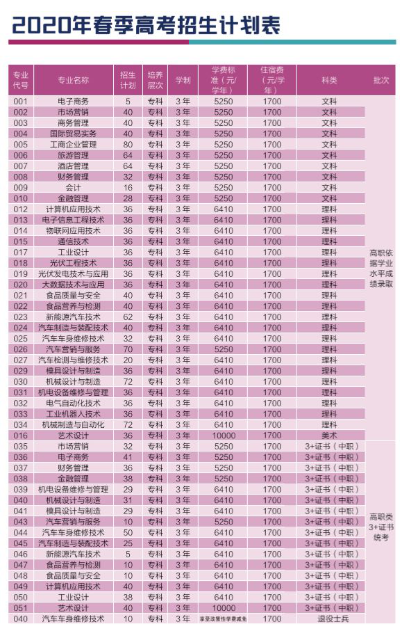 我校2020年春季高考招生含“依据普通高中学业水平成绩招生录取”(下称“依据学考成绩招生录取”)、“3+专业技能课程证书”招生录取形式。