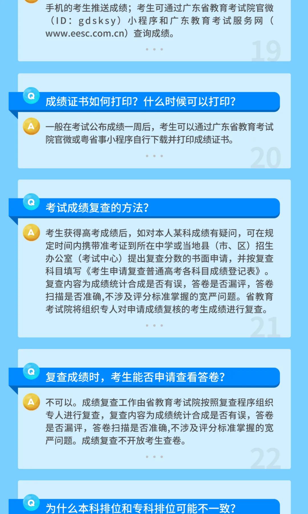 2021年,作为全国第三批高考综合改革试点的8个省市之一,广东省新一轮普通高考“3+1+2”模式正式实施。为使广大考生、家长和社会更加准确理解广东省高考综合改革有关内容,广东省教育考试服务中心收集整理了关于我省高考综合改革常见问题汇总(145问),并给予针对性解答,涵盖报名、考试、招生录取、志愿填报等方面,希望对各位考生有所帮助。