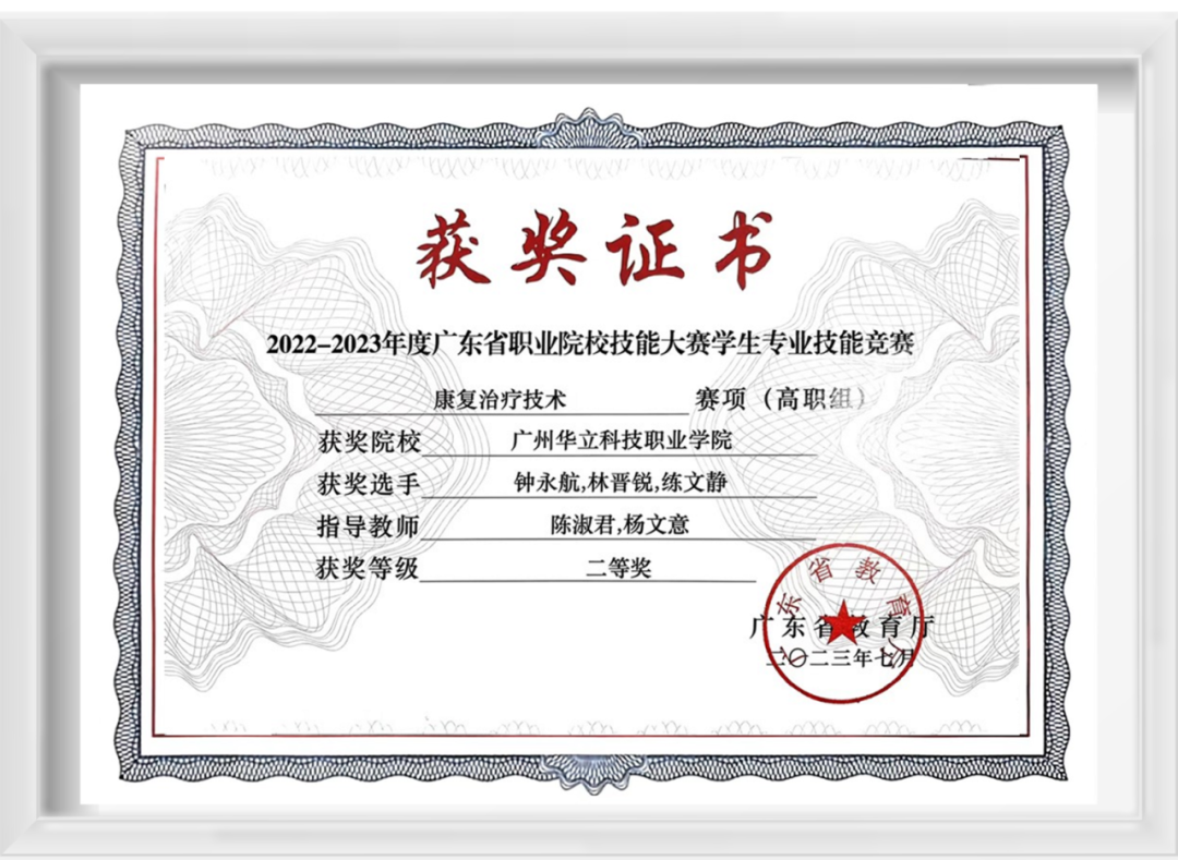 • 2022-2023年广东省职业院校学生专业技能大赛康复治疗技术赛项二等奖;