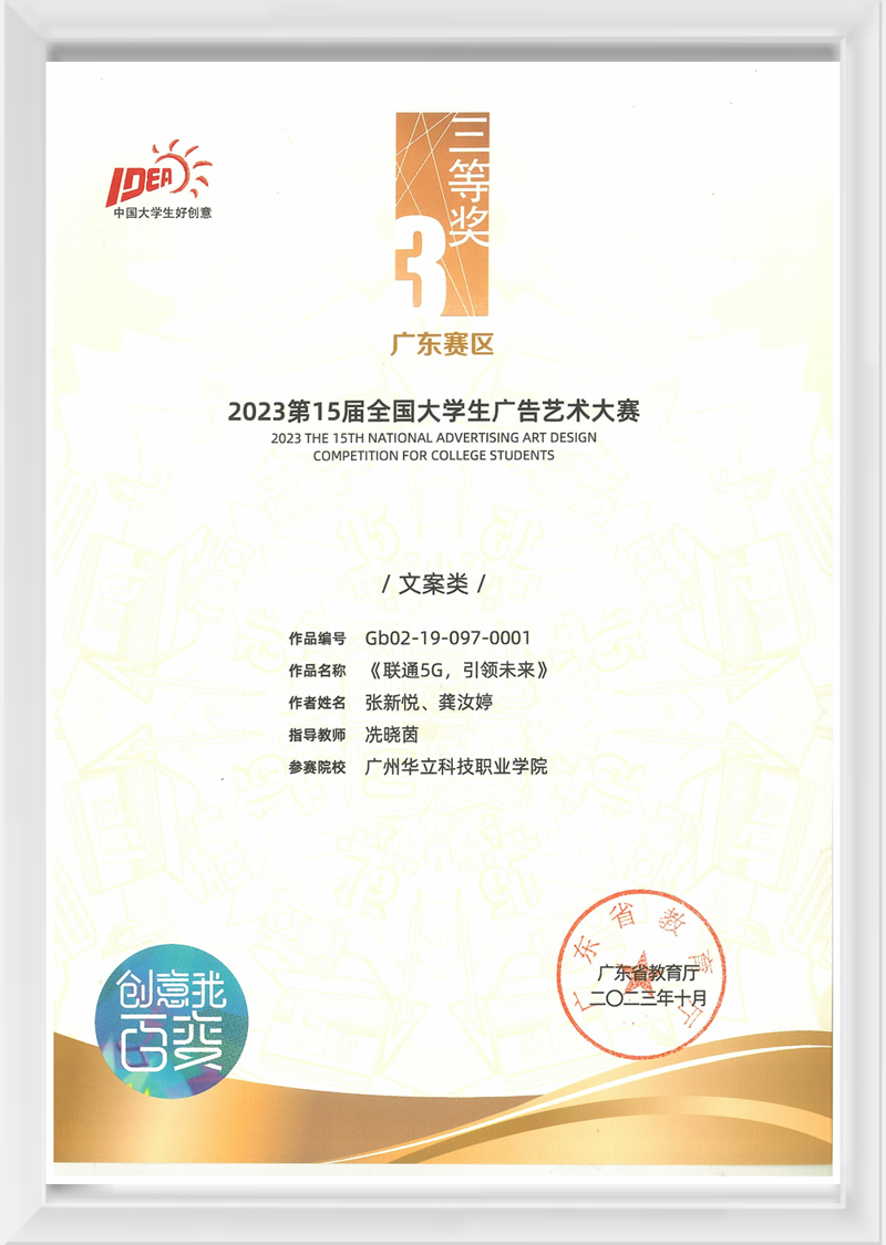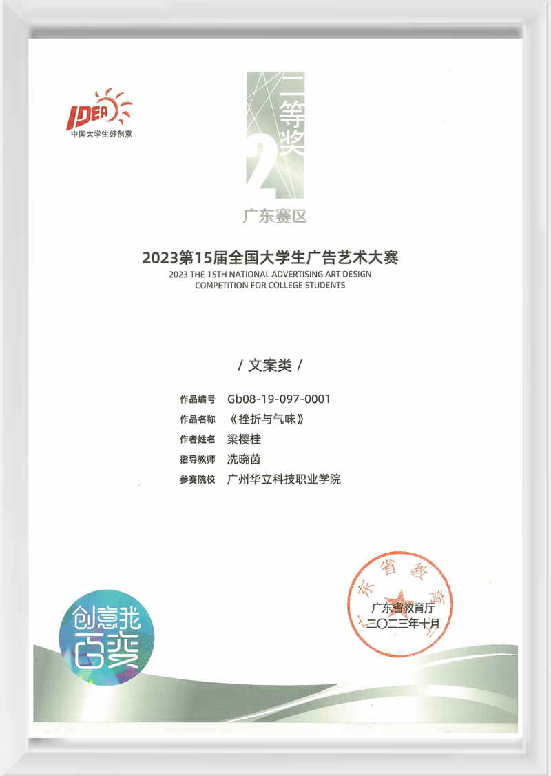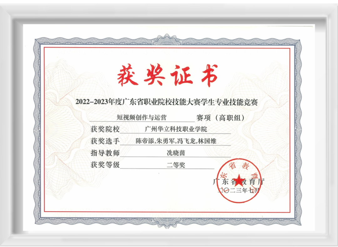 • 2022-2023年度广东省职业院校学生专业技能大赛短视频制作赛项二等奖;