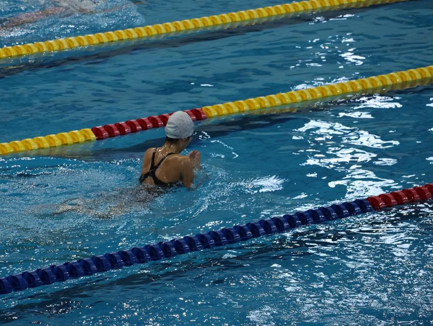 校泳队颜祉琪正在参加100米蛙泳决赛