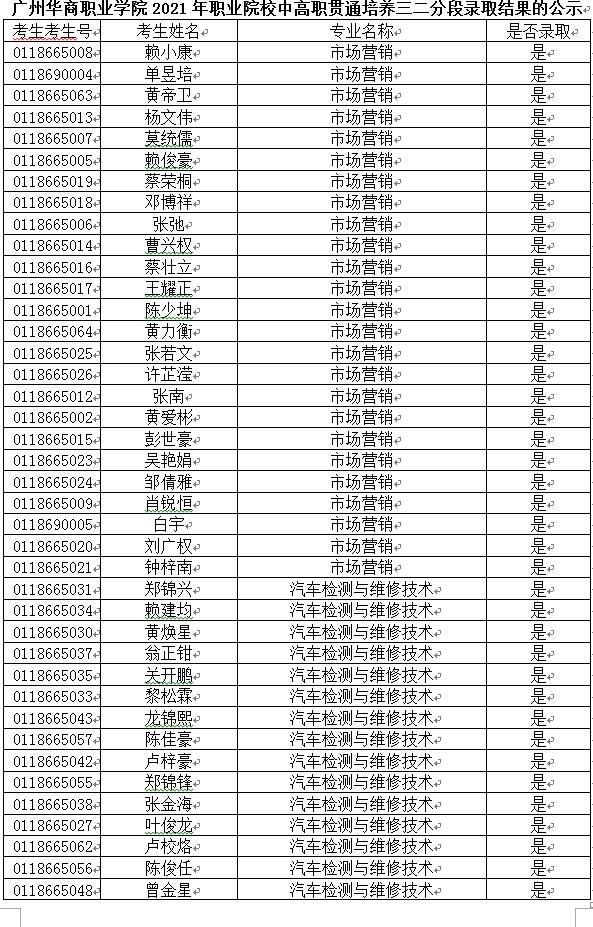 我校2021年职业院校中高职贯通培养三二分段转段考核拟录取名单经报广东省教育考试院审核通过,最终录取58人,现将正式录取结果予以公示(见附件)。