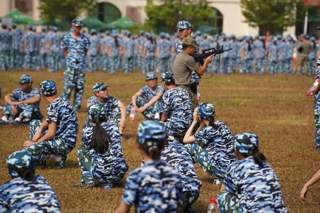 广演学子与教官们在烈日下