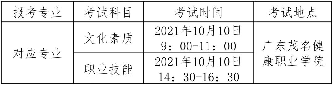 通过自主招生模式,采用“文化素质+职业技能”考核方式,按招生专业或专业大类组织进行。具体考核安排如下: