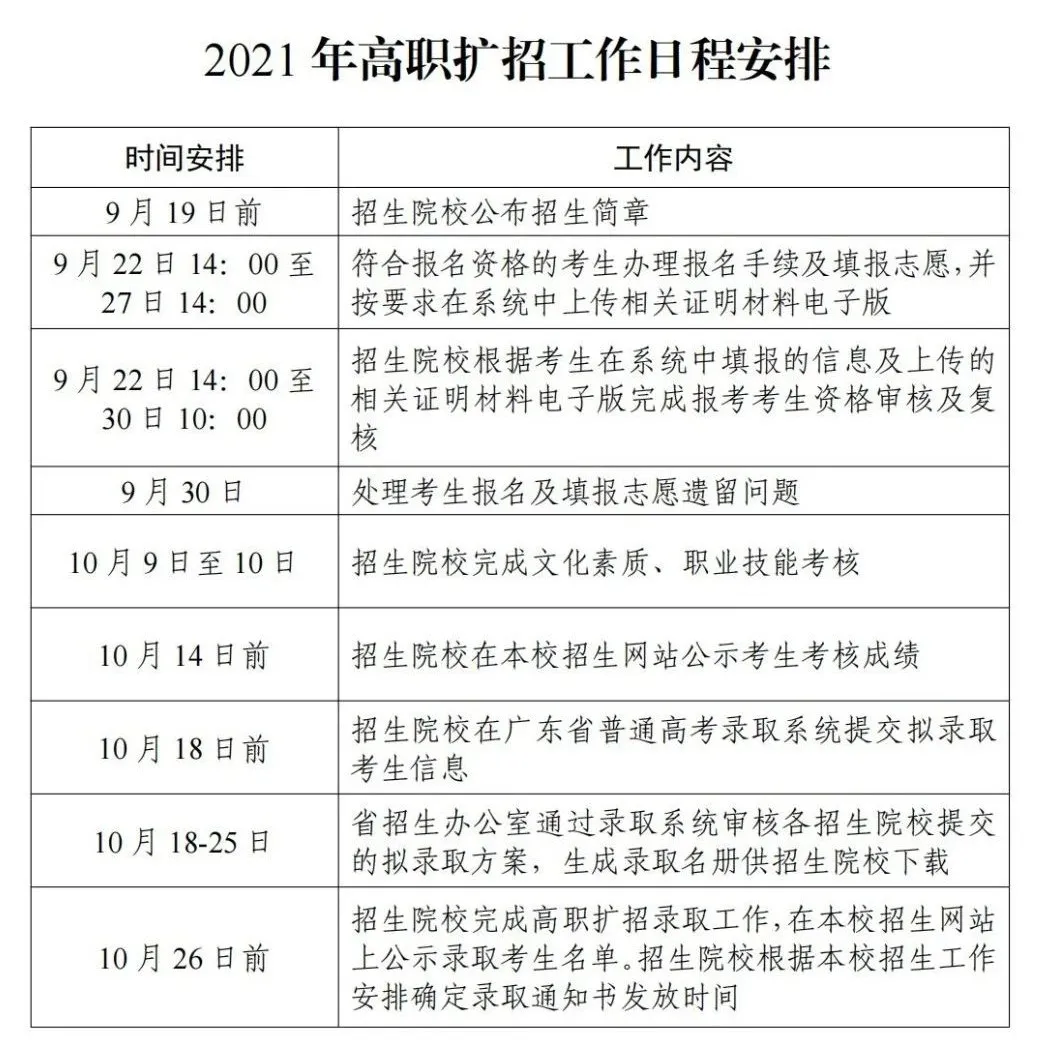 温馨提醒:高中阶段学校的在校生、具有普通高等学历教育资格的高校在校生,以及2021年在广东省或其他省(市、区)参加普通高校招生考试并被录取的考生(含录取后不报到考生)不得参加广东省2021年高职扩招专项行动。相关考生报考高职扩招专项行动,录取后无法注册学籍等后果由考生自行承担。