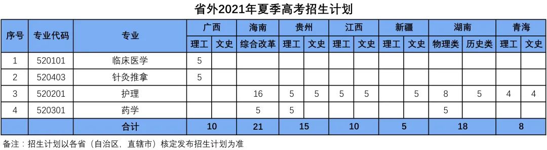2.2021年我院面向省外招生的省份为江西、湖南、广西、海南、贵州、青海、新疆,具体招生计划请查看夏季招生计划表。