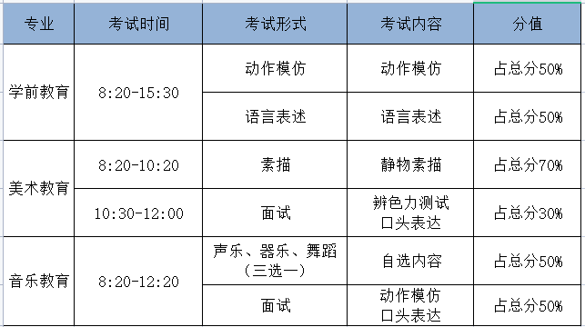 1、考生可报考我校学前教育、美术教育或音乐教育中的一个专业,也可跨专业填报,如“学前教育+美术教育”或“学前教育+音乐教育”。
