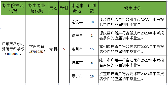 考生须参加报名所属地级市(茂名市、汕尾市、云浮市、湛江市、肇庆市)的中考,考试科目为考生户籍所在地级市2023年中考科目,并在“中考”填报志愿时,填报公费定向的院校志愿,批次为“提前批”。03