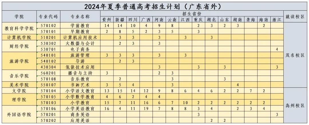 2024年夏季普通高考招生计划