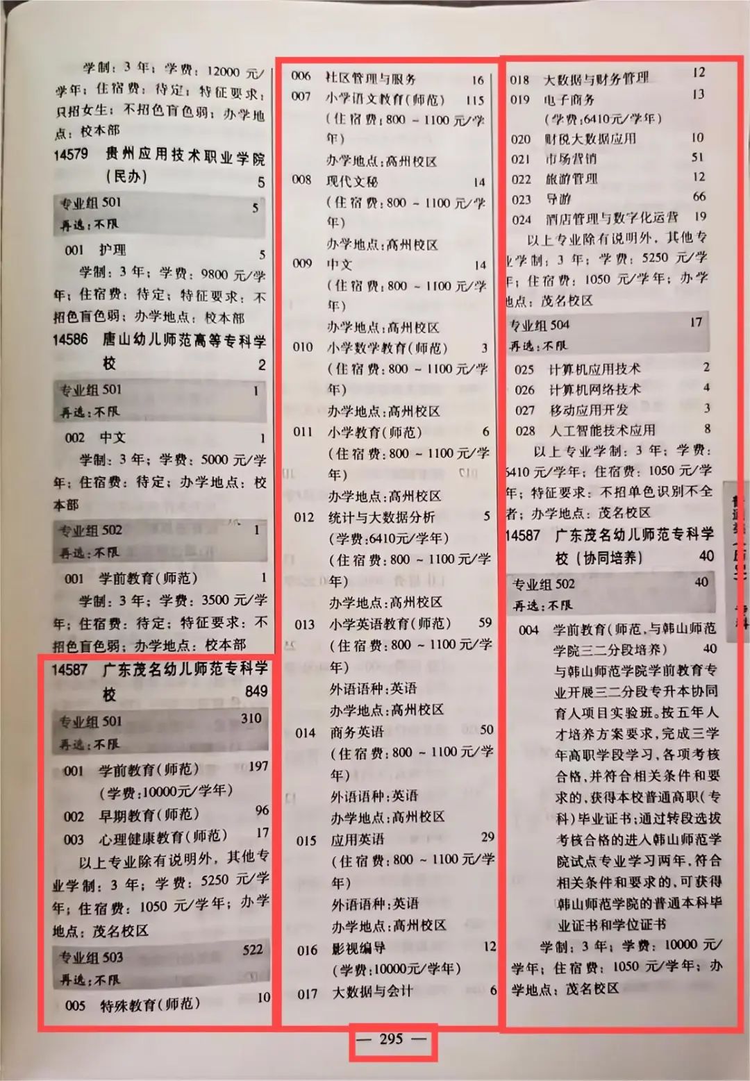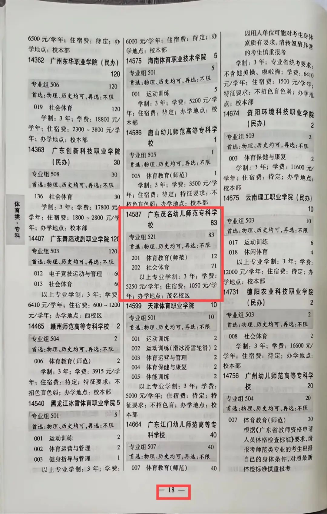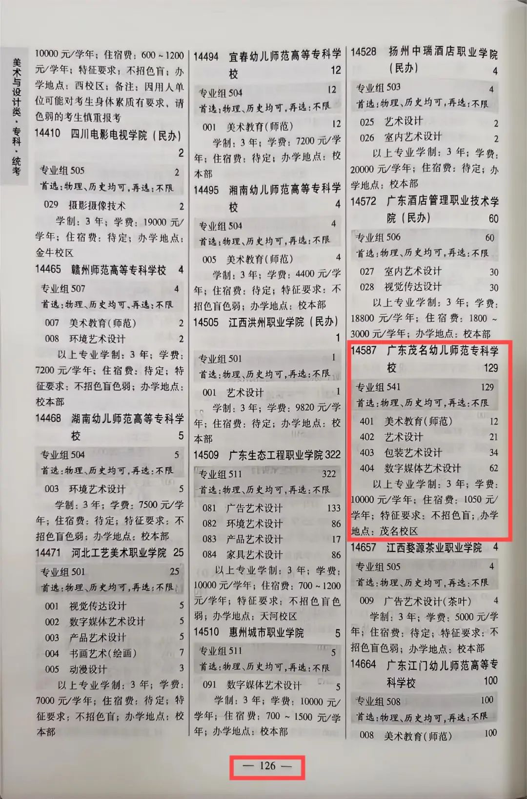 广茂幼师2024年广东省招生专业目录页码指引
