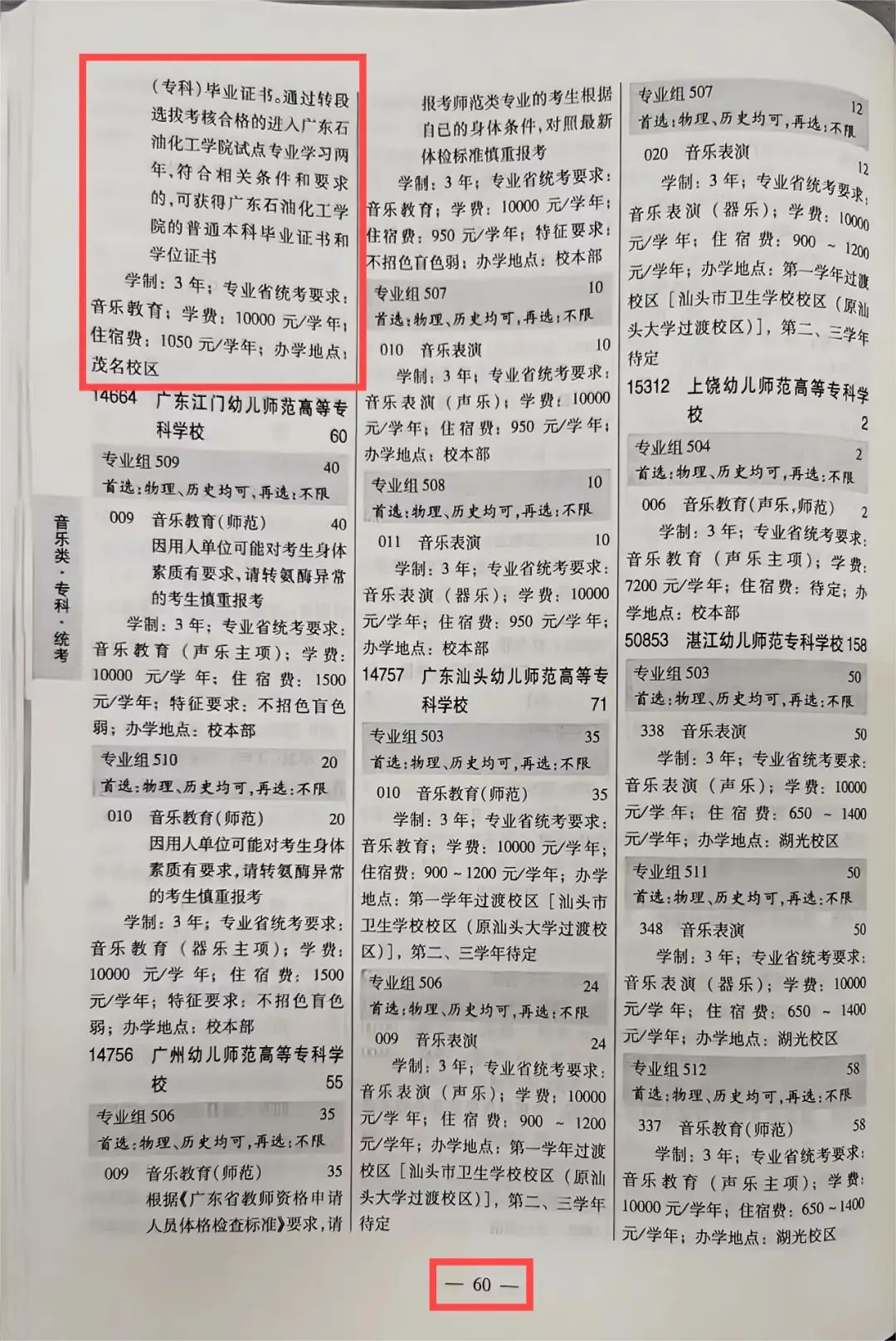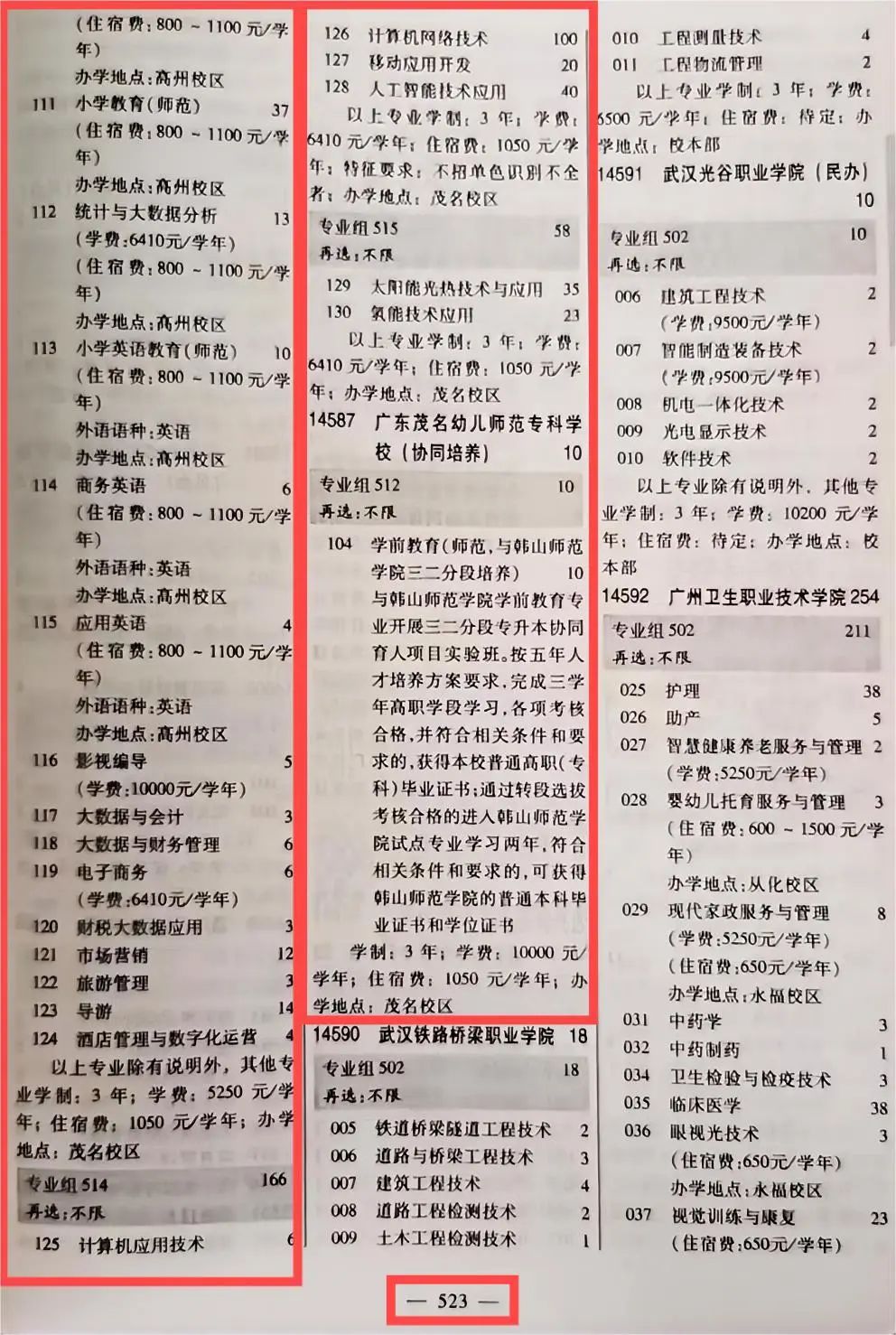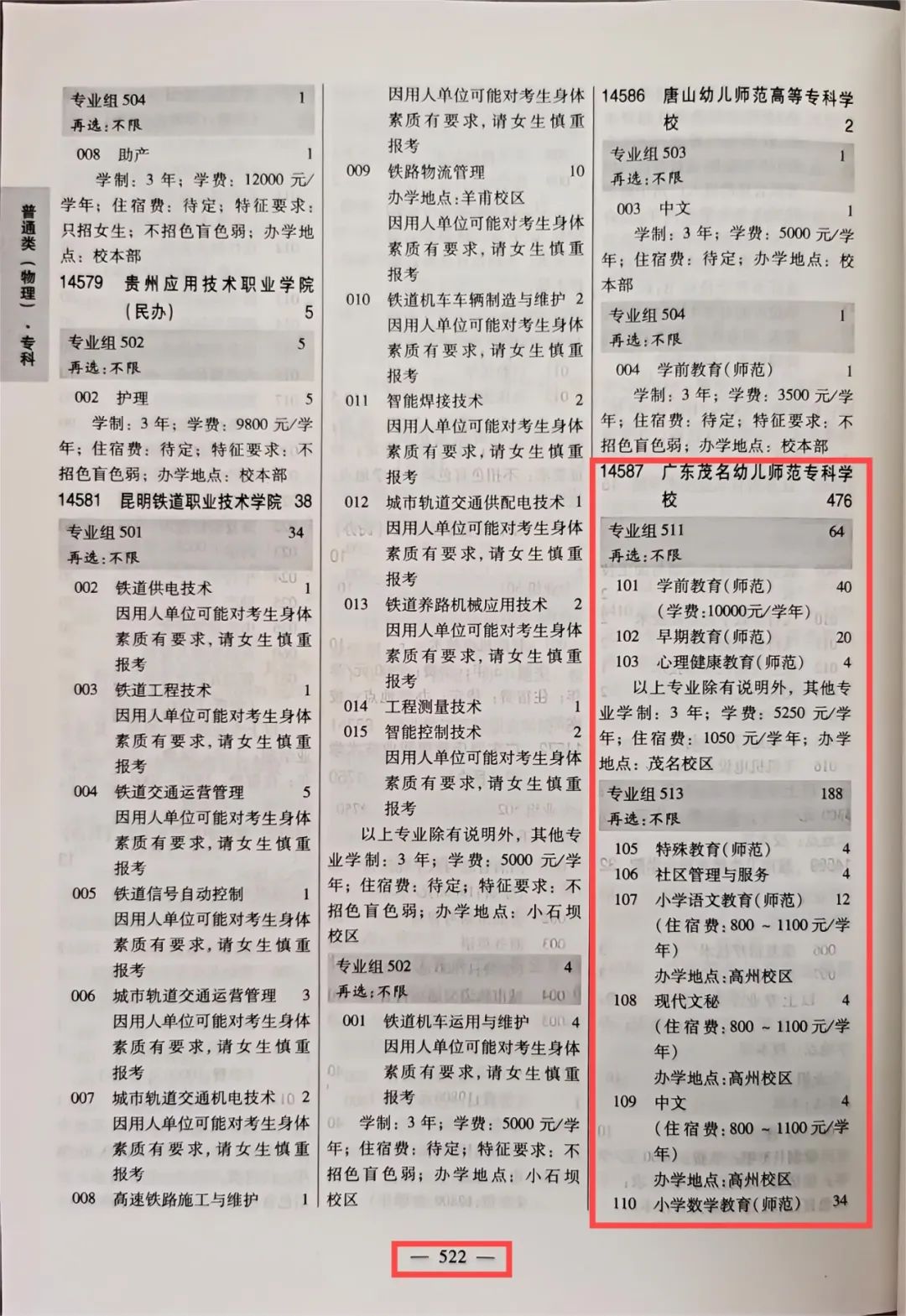 广茂幼师2024年广东省招生专业目录页码指引