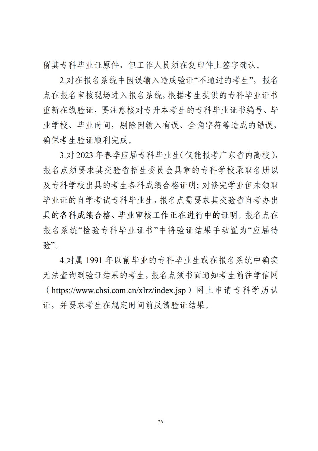 6.广东省2022年成人高校招生专升本考生专科毕业证验证方式及注意事项