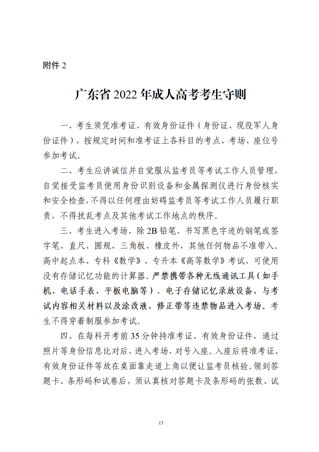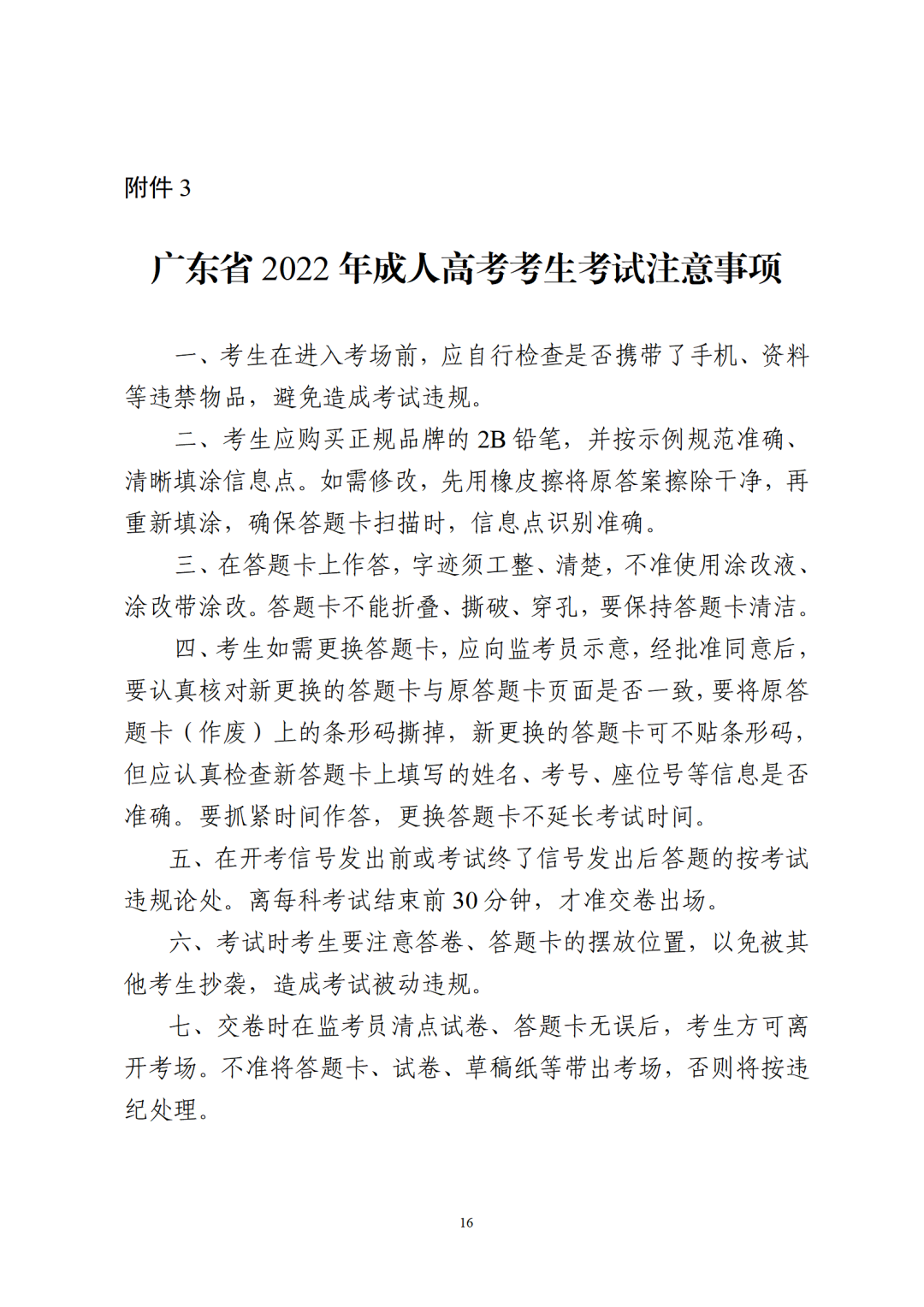 2.广东省2022年成人高考考生守则
