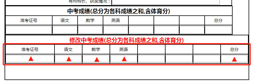 三、补填中考成绩