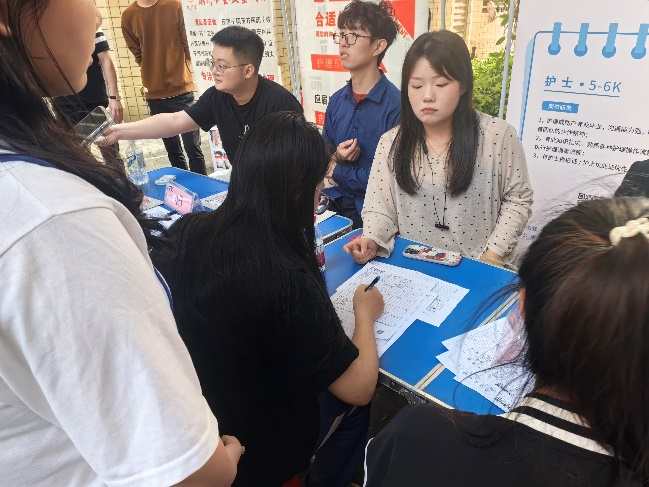 各招聘单位用工需求迫切且需求量大,纷纷表示对潮州卫校毕业生的认可与欢迎,我校毕业生备受青睐,但因相当部分毕业生将继续升学或已通过其它渠道落实就业,到现场见面求职的同学供不应求。在活动现场,用人单位代表热情与到场同学进行沟通,表达招聘诚意和用工需求,同学们也就自己关心的就业问题向招聘单位代表进行咨询,积极寻找自己心仪的工作岗位,供需会场面热烈,气氛和谐。大部分单位收到毕业生投递的求职资料,并达成录用初步意向。