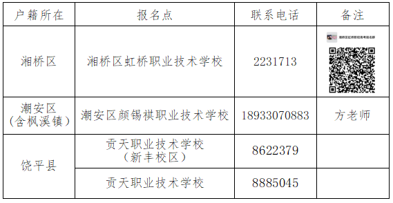 非我市高中阶段学校毕业的潮州户籍考生及往届毕业生报名点和联系方式如下: