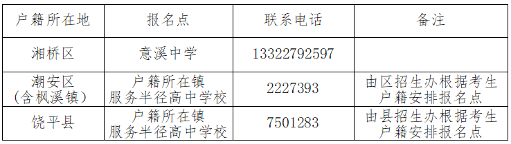 (2)外市高中阶段学校的我市户籍学生,原则上应在就读学校报考,因特殊原因确需回潮州报考的,应到户籍所在区(县)指定的报名点报考(联系方式见附件)。