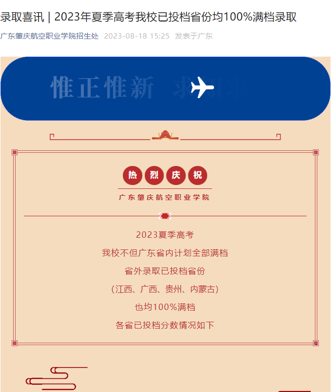 录取喜讯 | 2023年夏季高考我校已投档省份均100%满档录取