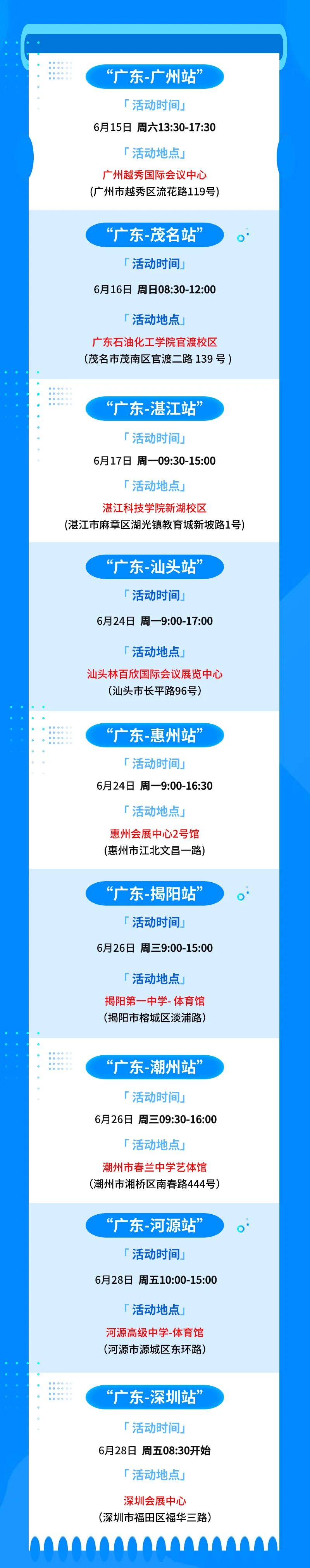 在高考志愿填报即将到来之际,相信很多家长对志愿填报有很多的疑惑。6月15日-28日期间,深圳城市职业学院资深的招生宣传队伍,将分别奔赴广东省广州、茂名、湛江、汕头、揭阳、潮州、河源、惠州、深圳等城市,参加各地高考招生咨询会,为广大考生和家长解惑答疑。