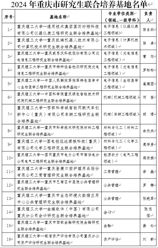 近日,重庆市教育委员会公布了2024年研究生联合培养基地名单,我校18个联合培养基地获批立项。