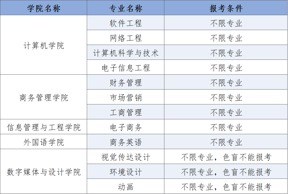 我校招生专业无前置专业要求,考生均参加省统考,无校考。建议拟报考计算机学院、数字媒体与设计学院专业的考生,充分考虑已有专业基础。