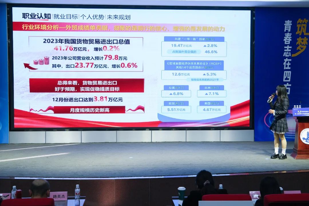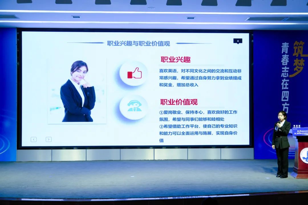 就业赛道面向高年级学生,考察求职实战能力,个人发展路径与经济社会发展需要的适应度,就业能力与职业目标和岗位要求的契合度。参赛选手们通过展示ppt和个人简历,阐述了个人发展路径及与职业目标和岗位要求相契合的就业实战能力。