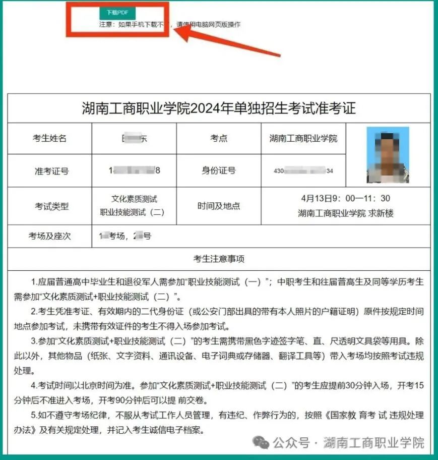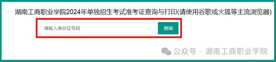 报考湖南工商职业学院的二志愿考生(已缴费报名),电脑页面使用360浏览器极速模式或谷歌浏览器等主流浏览器登录湖南工商职业学院2024年单独招生考试准考证查询与打印页面,网址为: