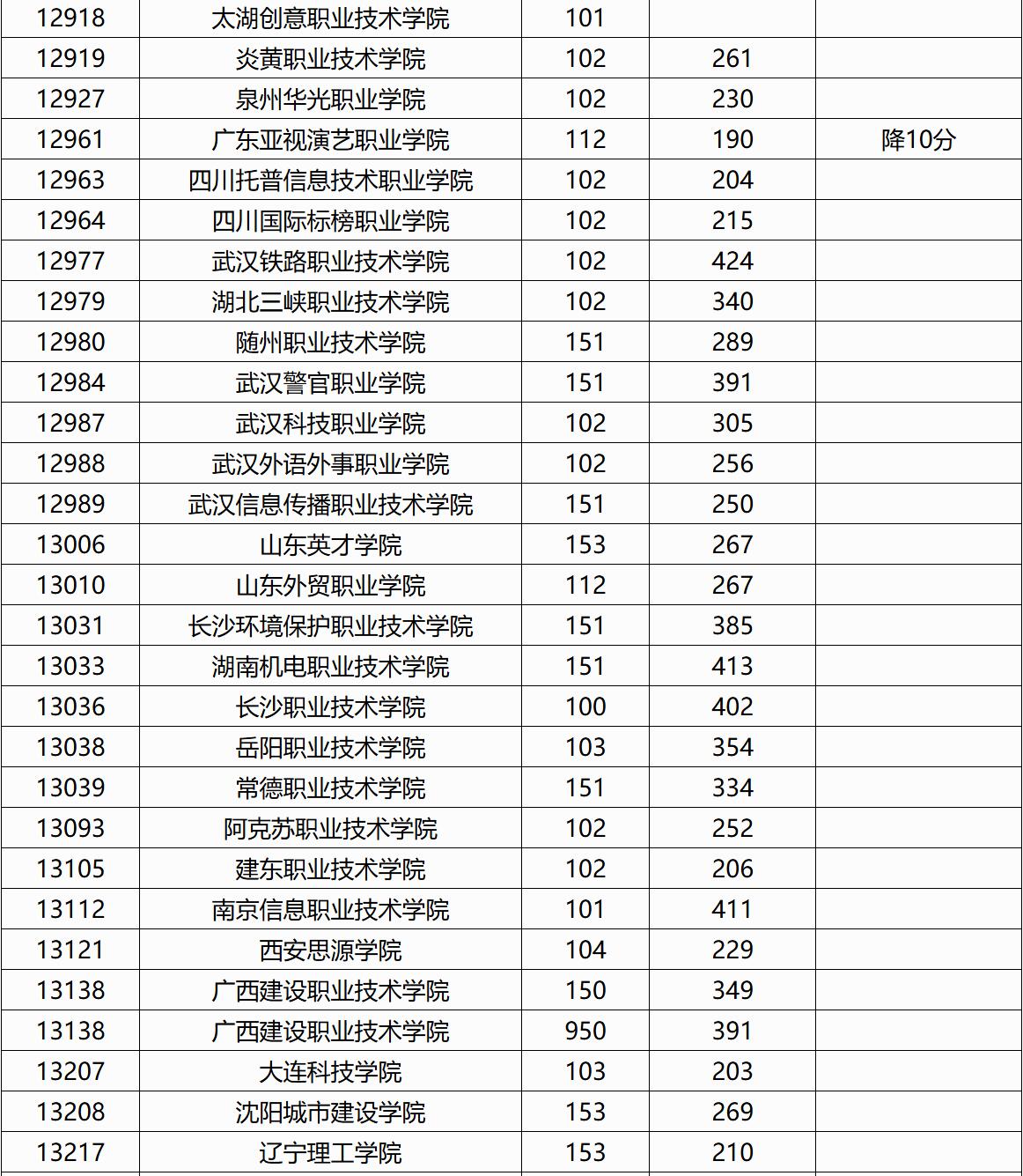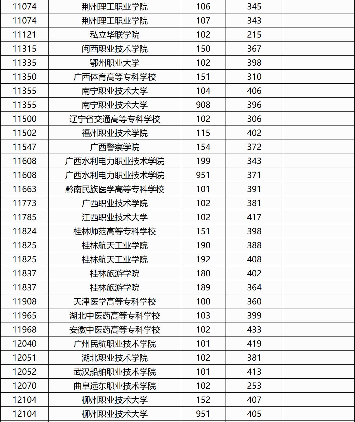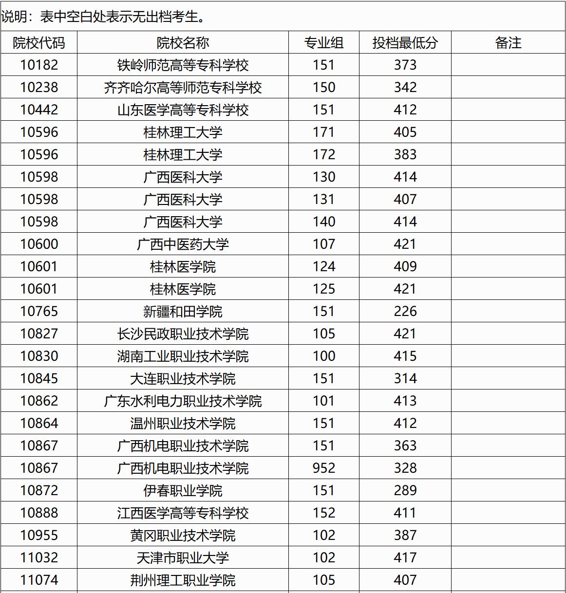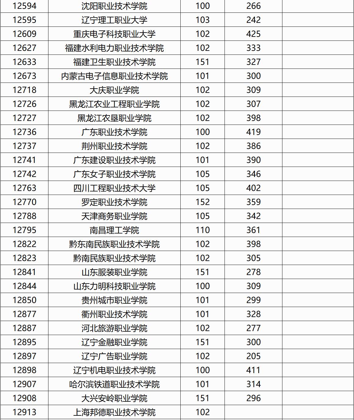 2024年高职高专普通批院校专业组第一次征集投档最低分数线(首选物理科目组)