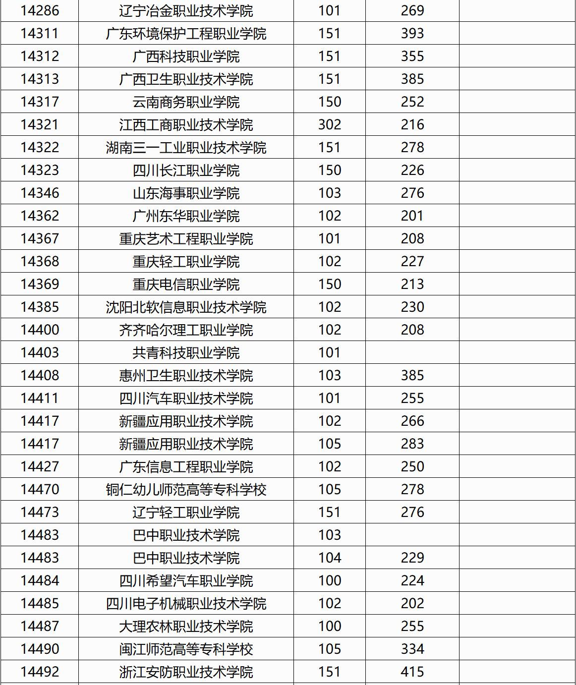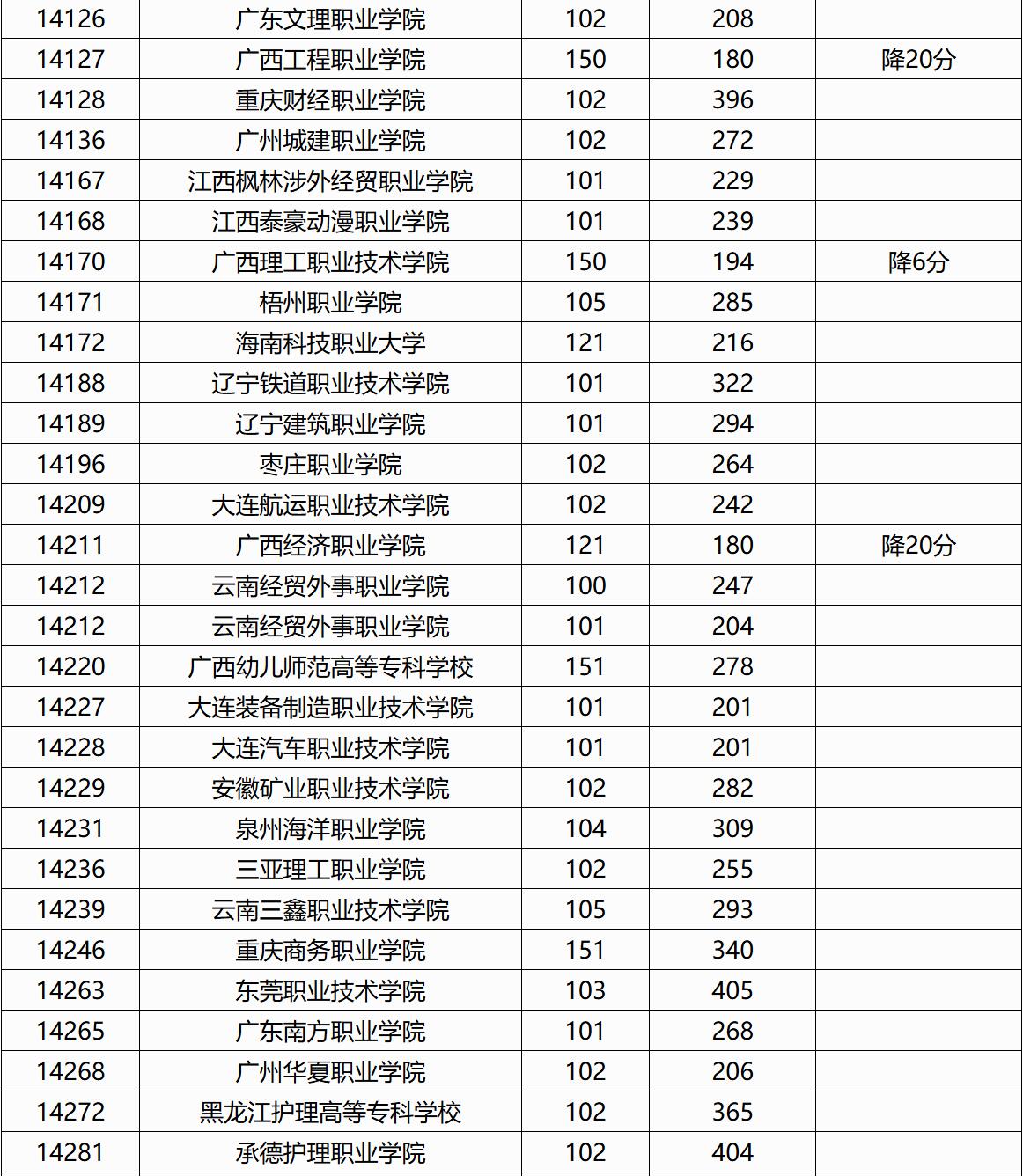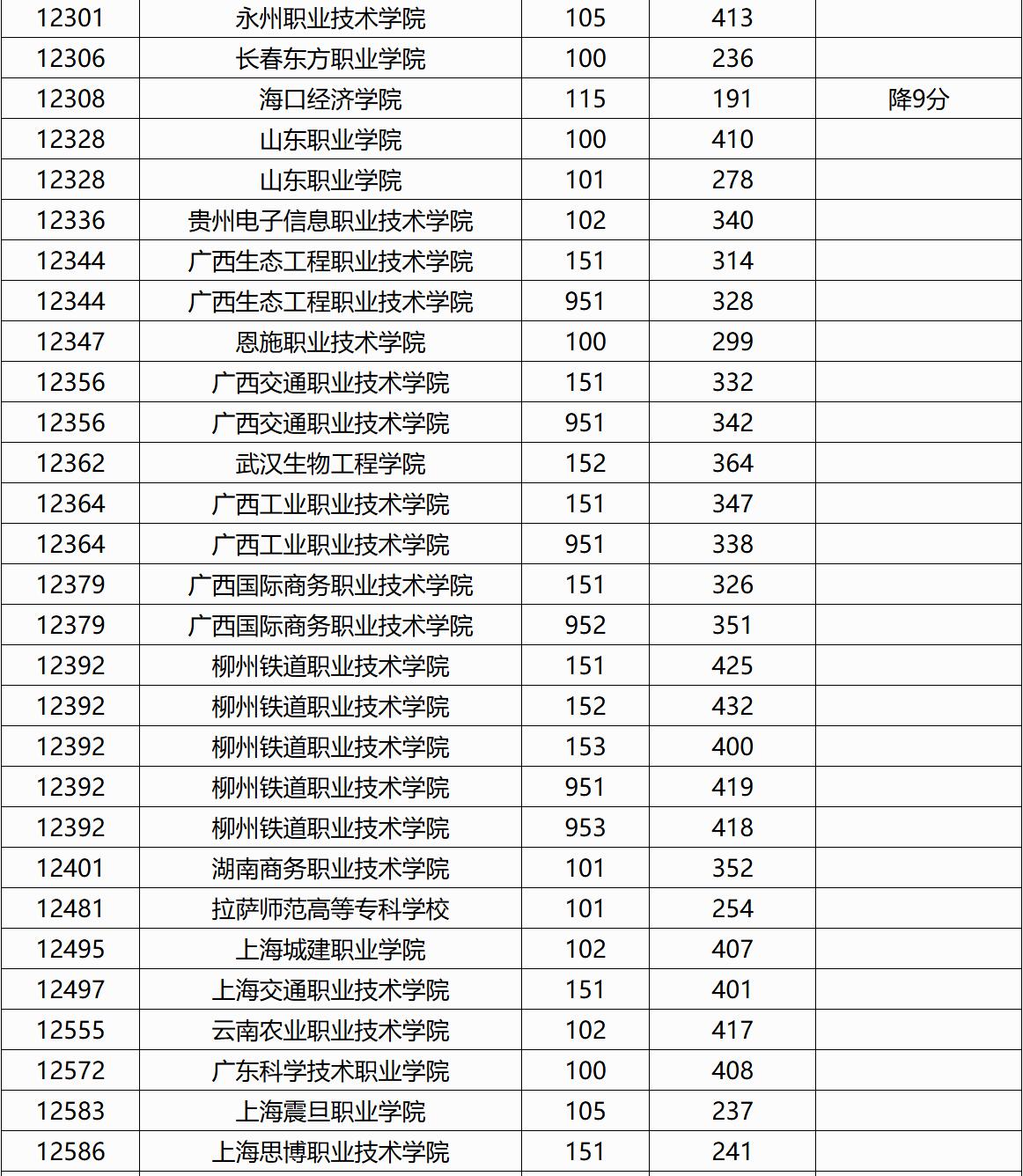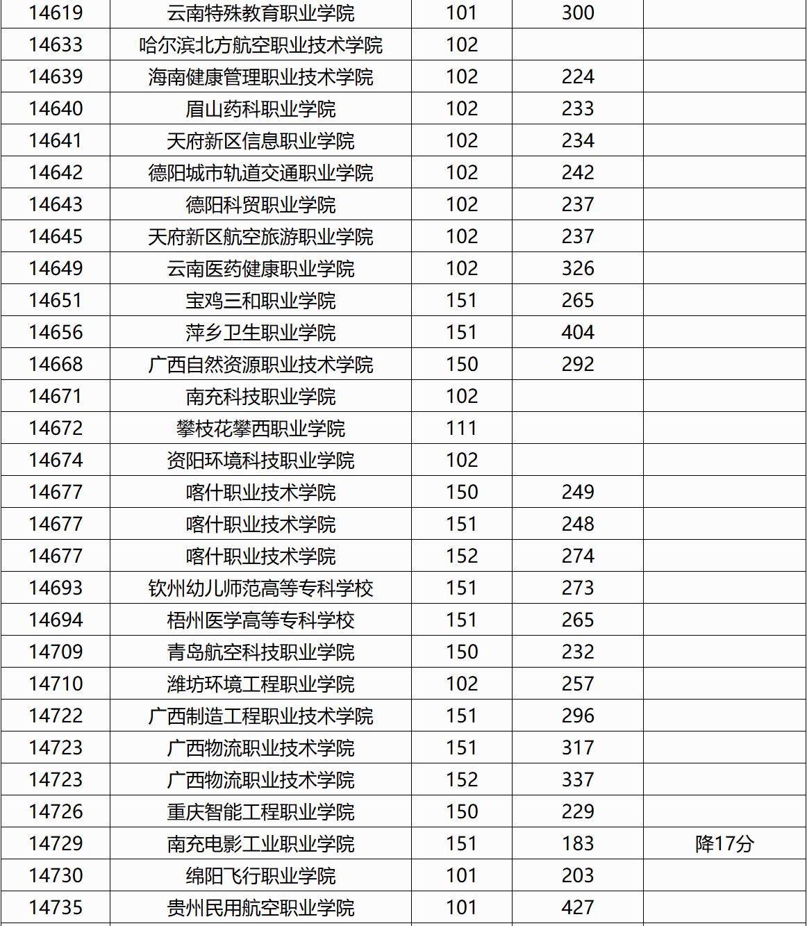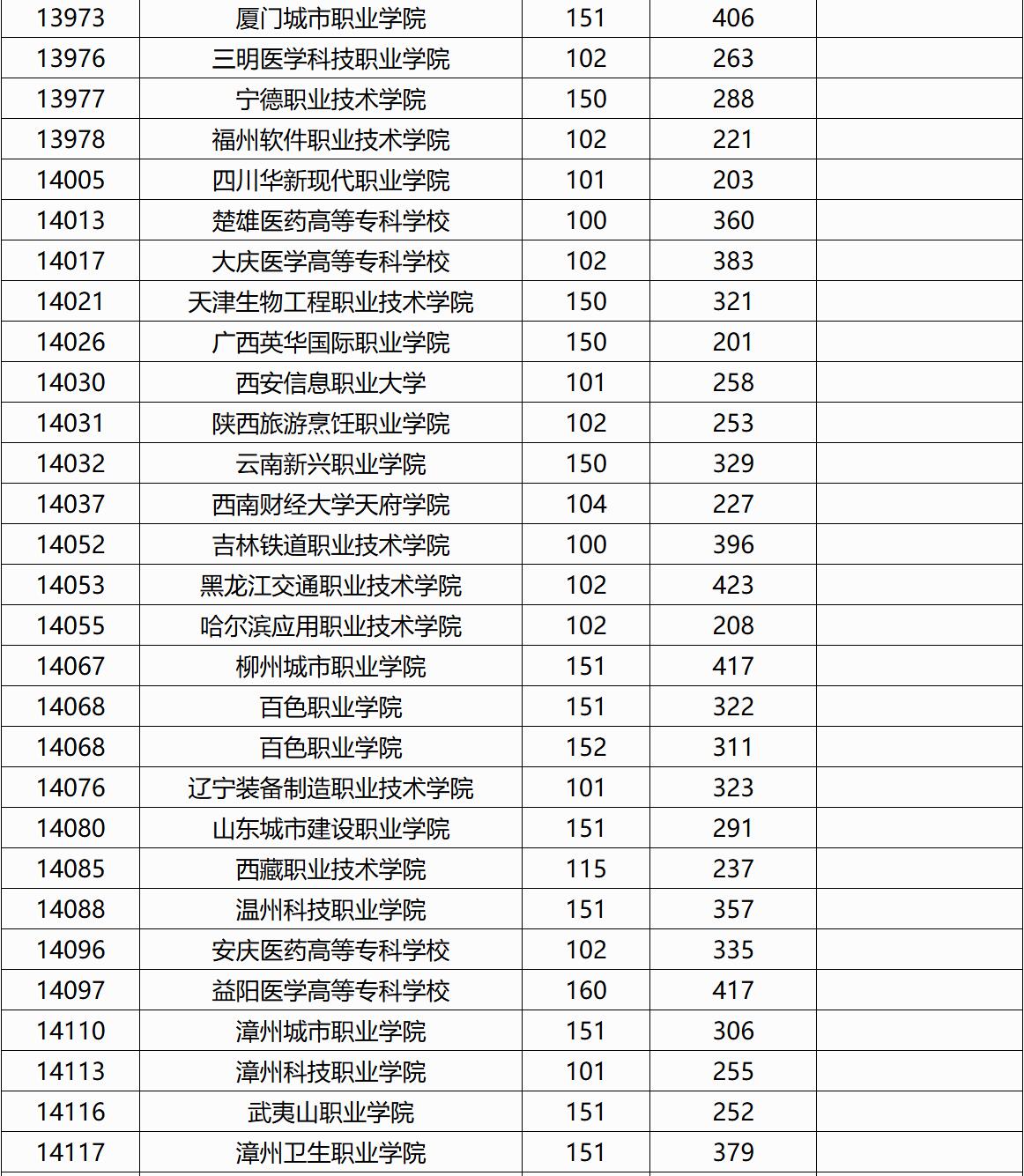 2024年高职高专普通批院校专业组第一次征集投档最低分数线(首选物理科目组)