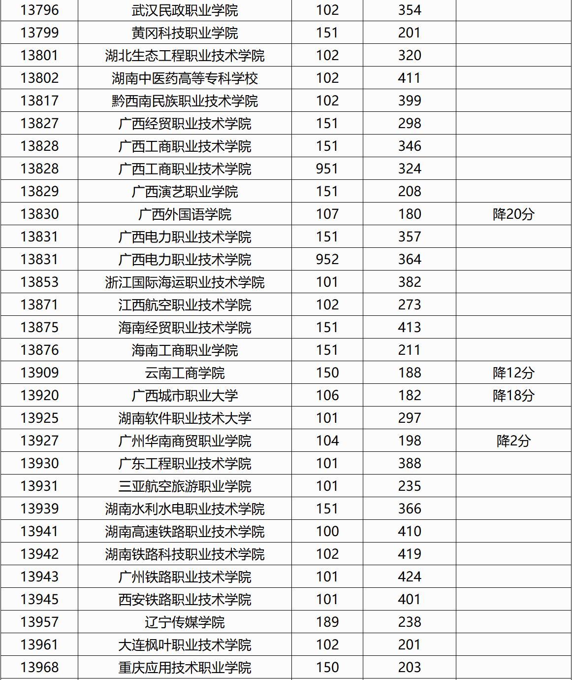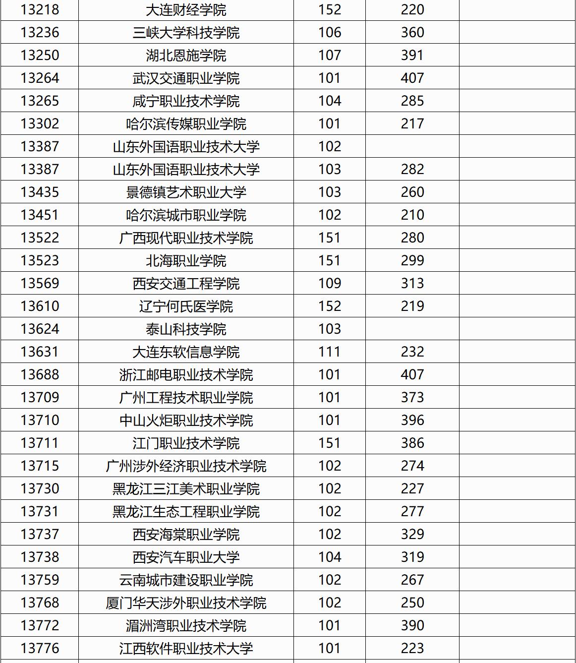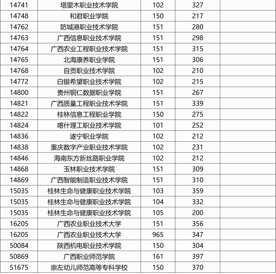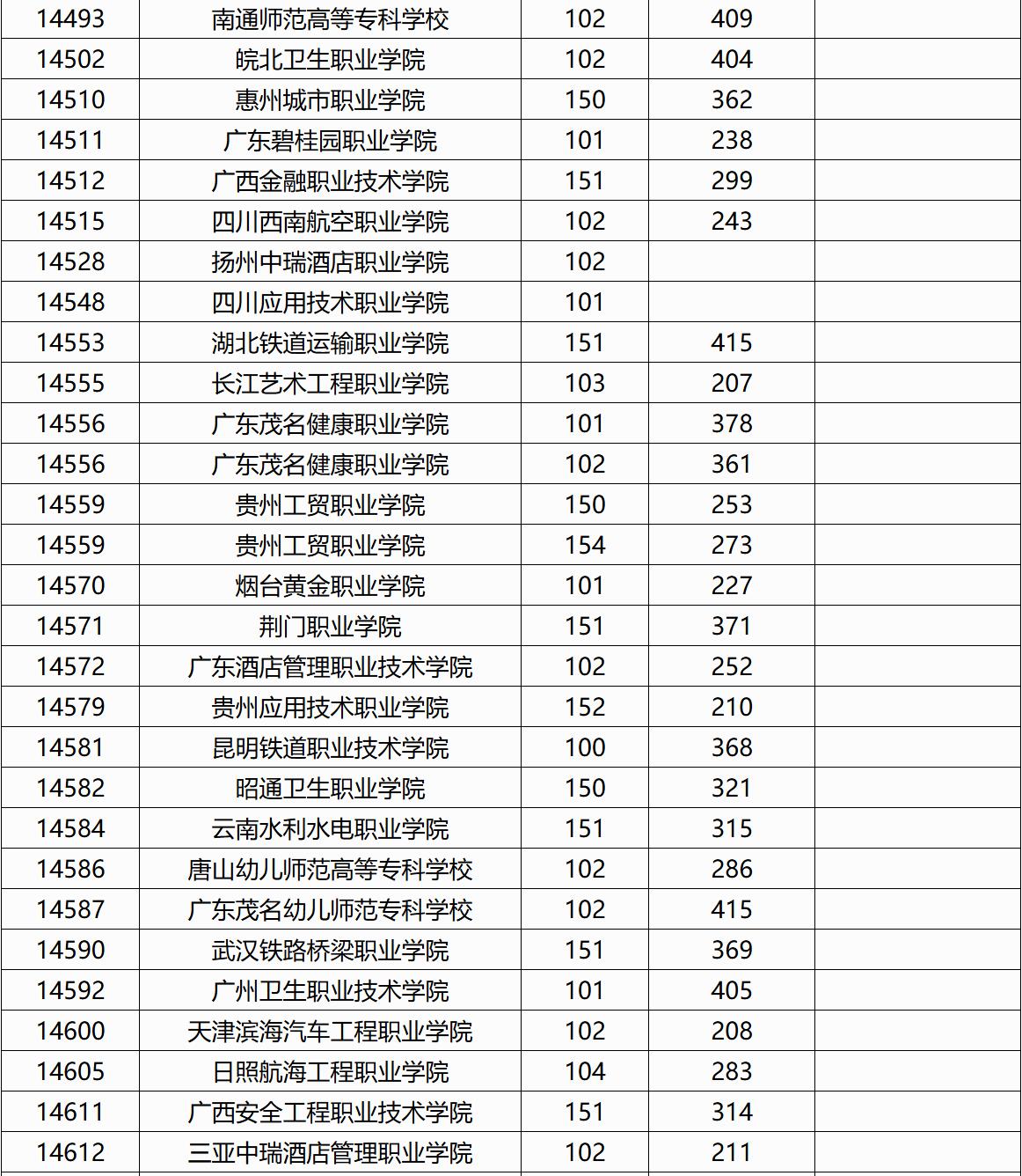 2024年高职高专普通批院校专业组第一次征集投档最低分数线(首选物理科目组)