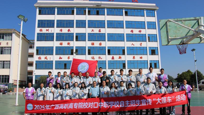 为宣传2025年广西分类考试招生政策,促进高职高专院校与中等职业学校之间的深入交流,10月28日-11月2日,2025年广西高职高专院校对口中职学校自主招生宣传“大篷车”活动正式启动。我校选派了4名招生宣传骨干教师参加此次活动。