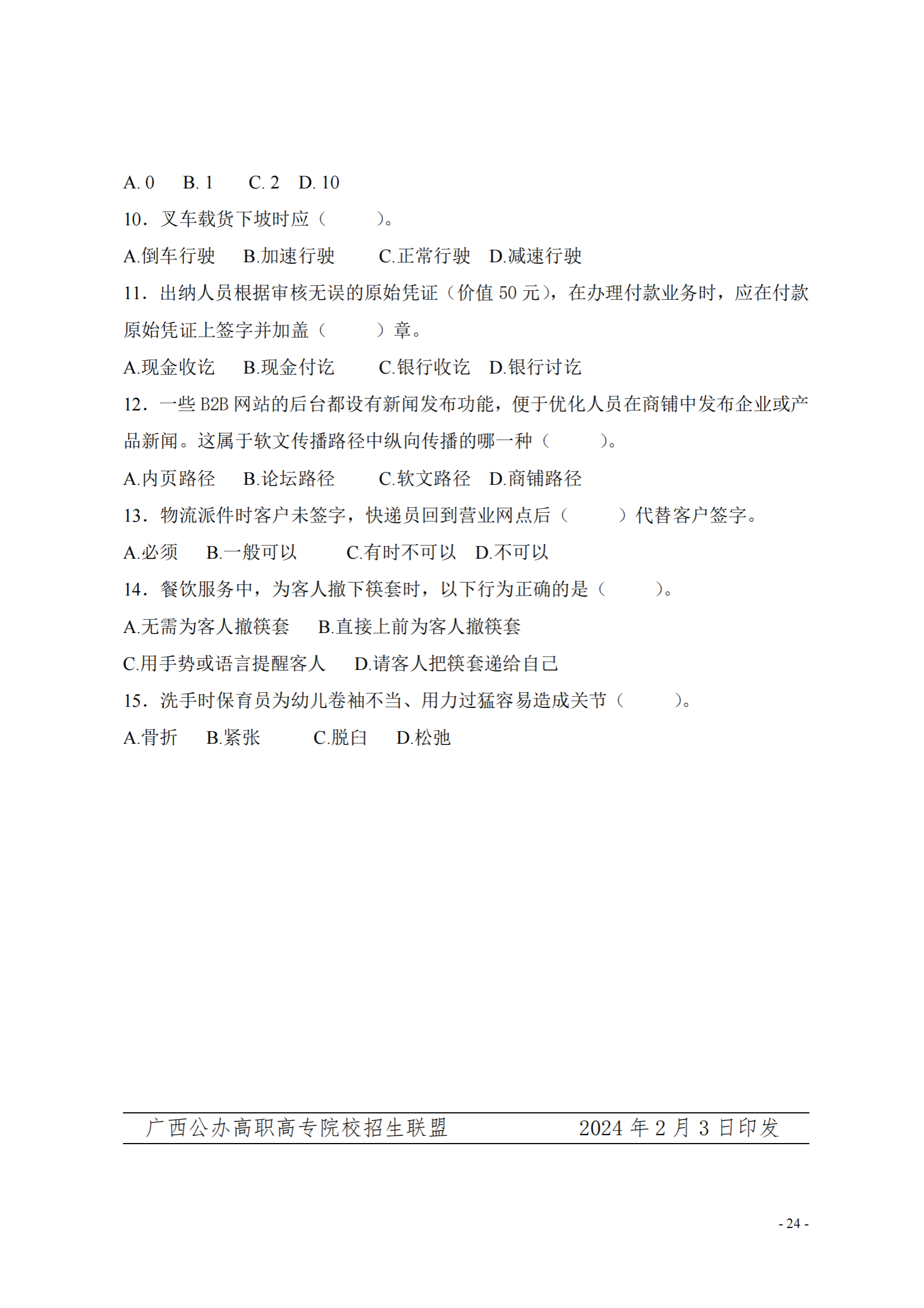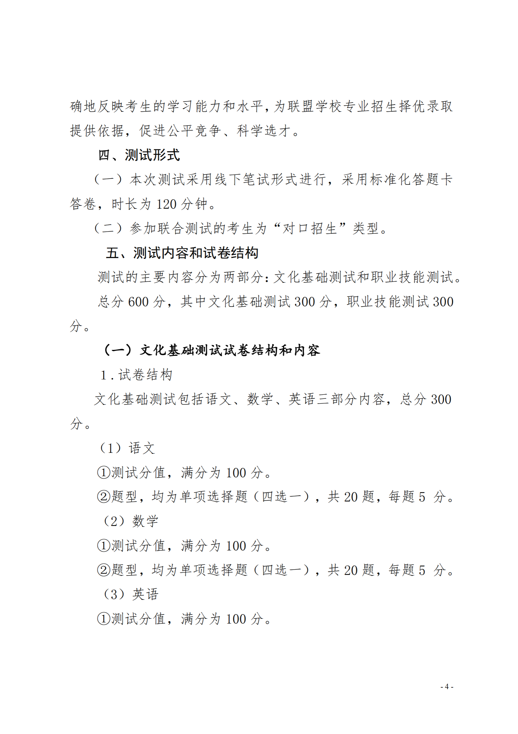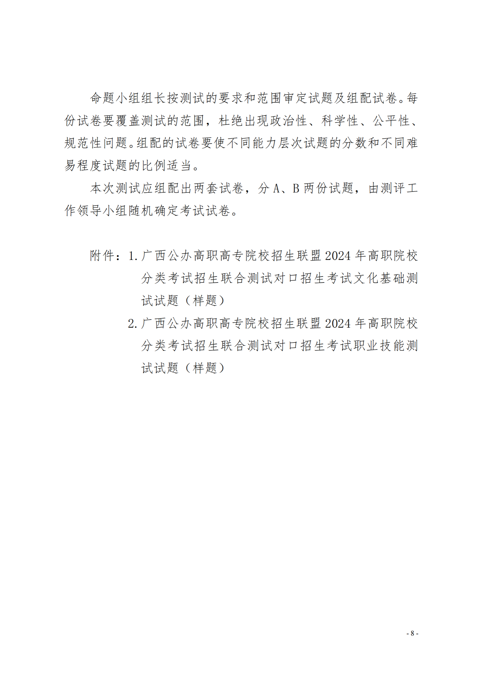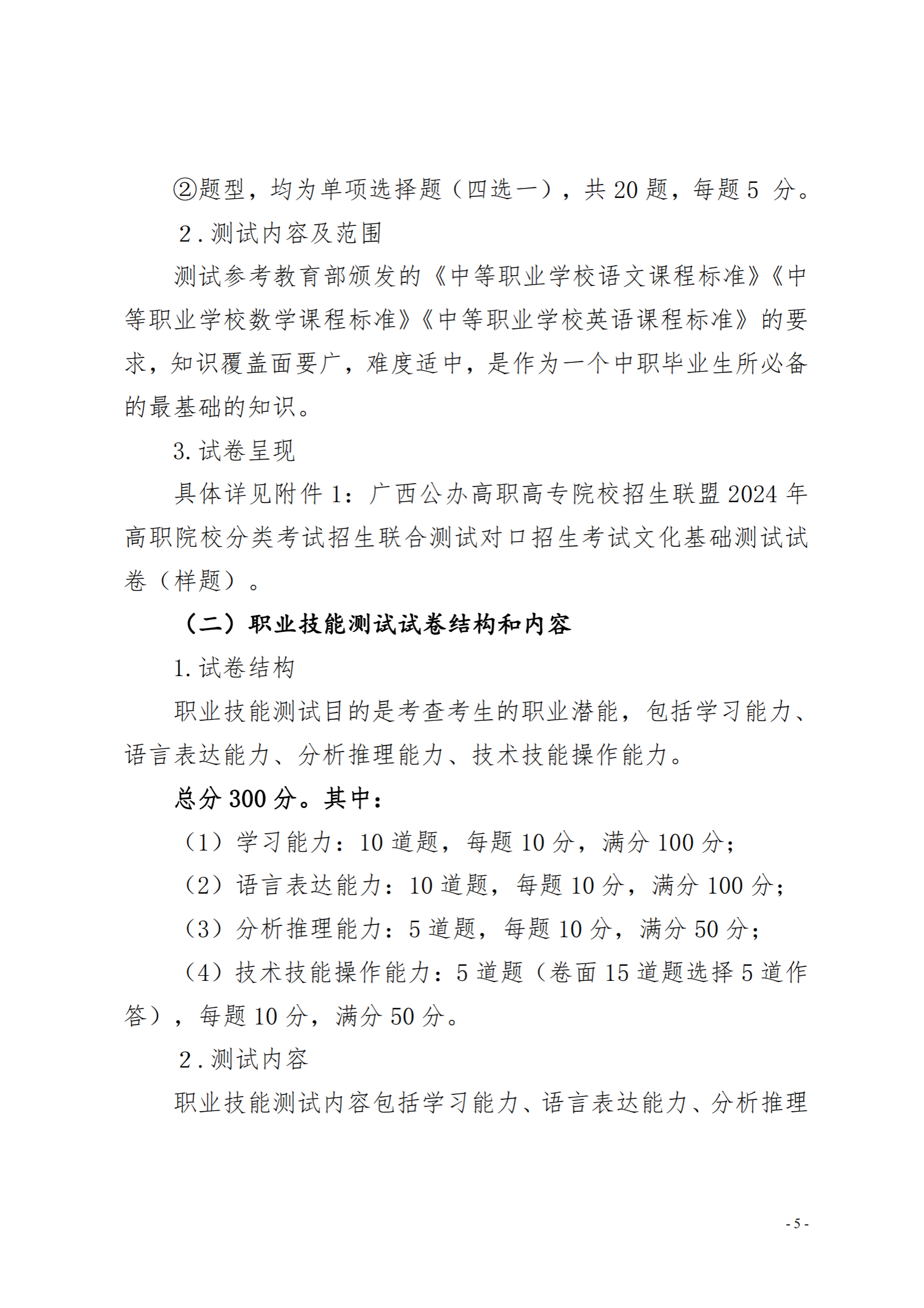 《广西公办高职高专院校招生联盟2024年高职院校分类考试招生联合测试对口招生〈文化基础测试+职业技能测试〉考试大纲》