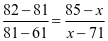 考生甲,思想政治科目原始分数为81分。第一步,假设当年该科目B等级的原始分数分布区间为82~61分,按照原始分数该生被划定为B等级;第二步,根据各等级的转换分数区间,将B等级内的考生原始分数,依照等比例转换方法,转换到85~71分数段,根据转换公式,该考生思想政治科目的转换分数为: