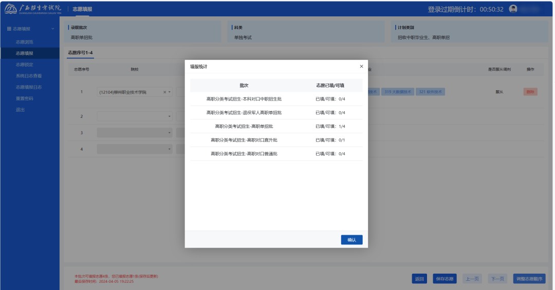 志愿填报完成页面如下: