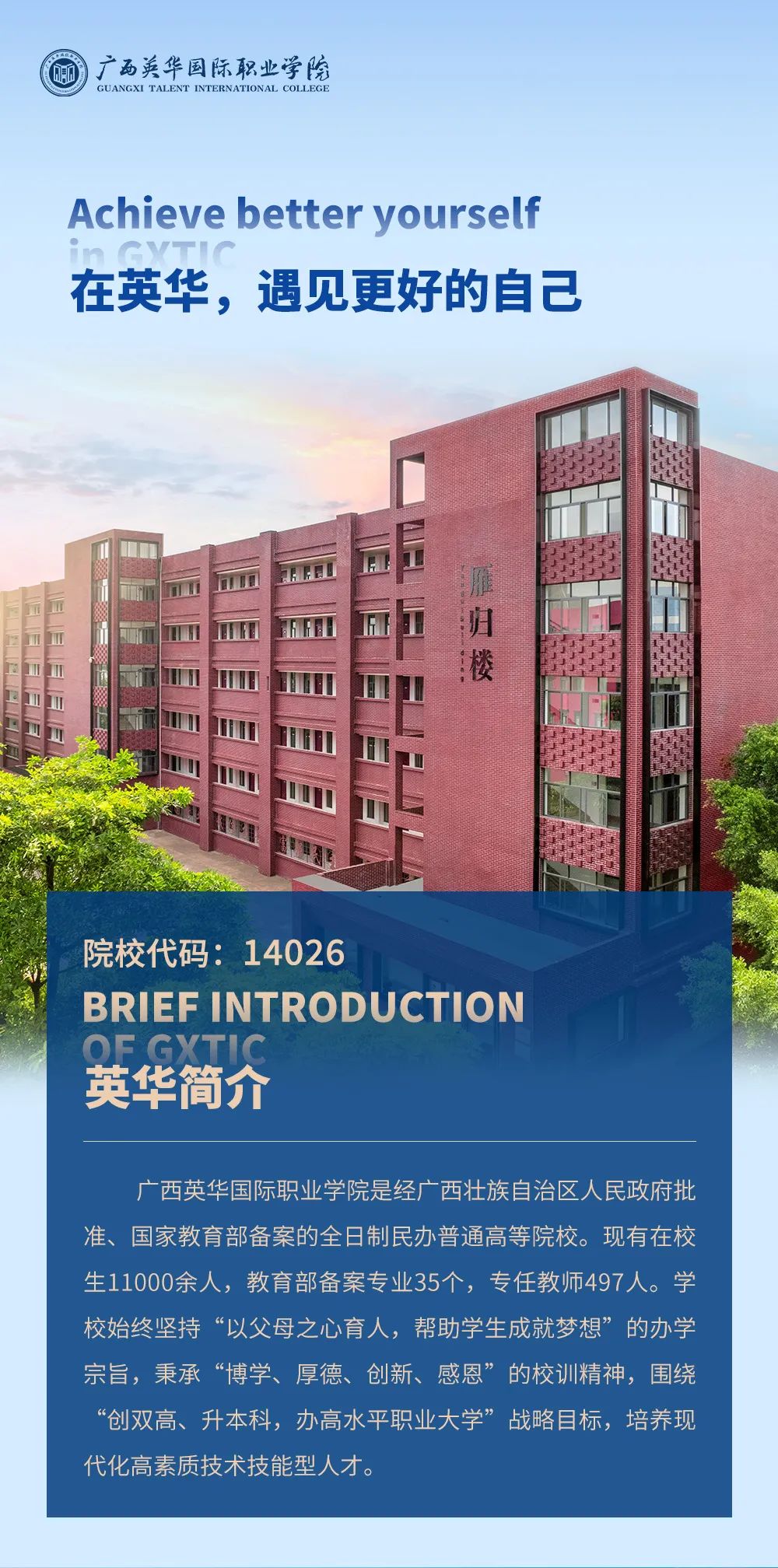 为确保录取,请认准广西英华国际职业学院(院校代码:14026),并将广西英华国际职业学院锁定为第一志愿并勾选服从调剂。