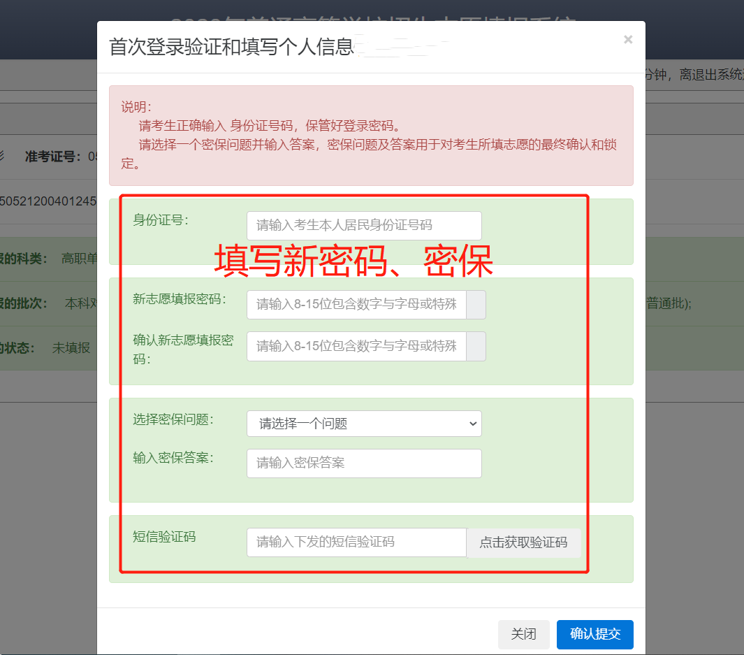 考生依次输入高考报名号、登录密码(志愿填报密码)、验证码进入志愿填报界面。