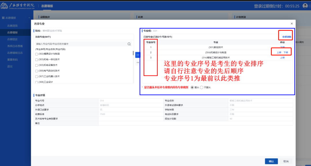 注意,需要给专业排好顺序,保证能录进心仪专业: