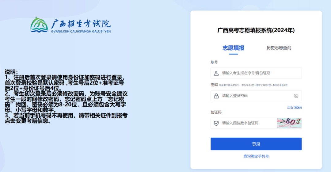 考生首次登录“2024年普通高校招生志愿填报系统”时使用本人普通高考网上报名时设置的密码,登录成功后须立即修改密码。