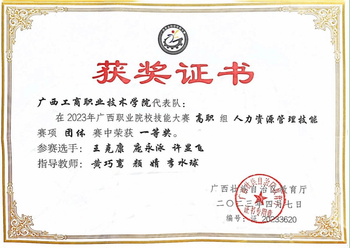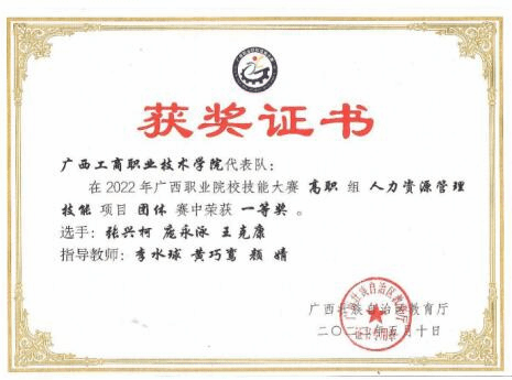 2023年度广西职业院校技能大赛高职组人力资源管理技能项目团体赛一等奖