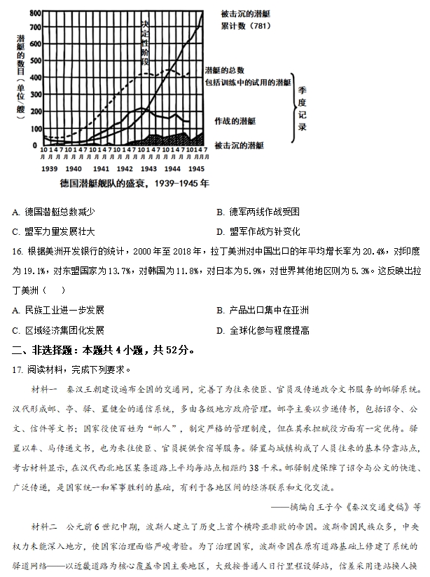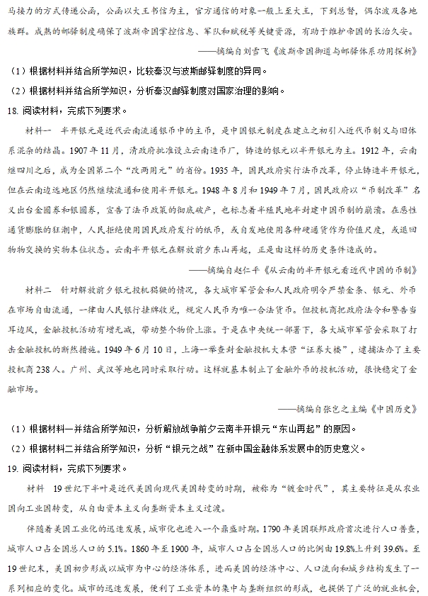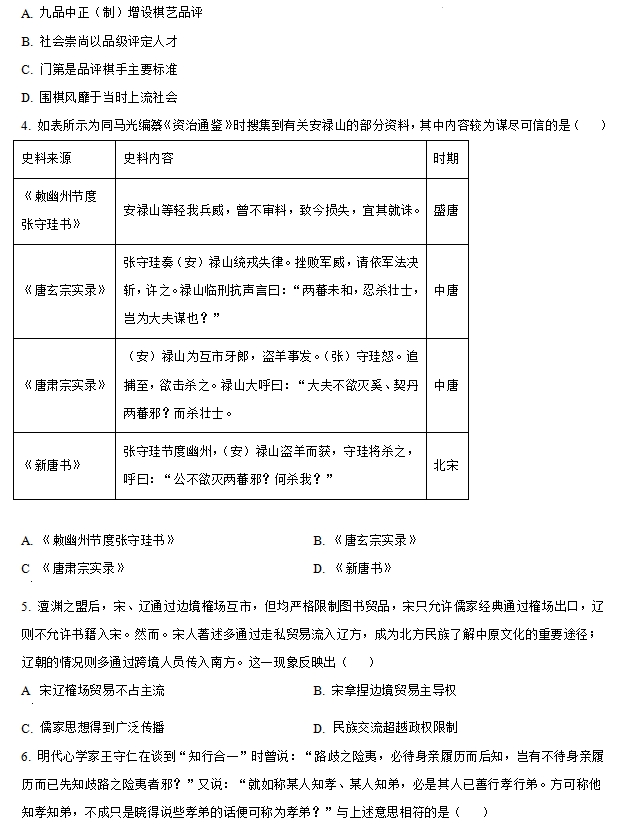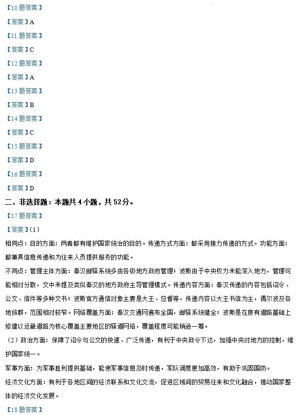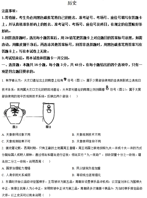 云南省2025年普通高校招生适应性测试历史试题及答案